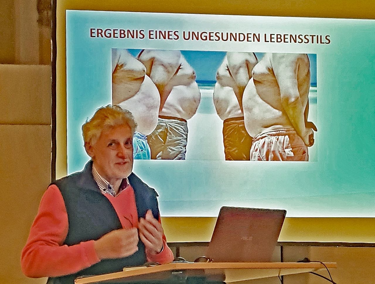 Alterswissenschaftler Christoph Rott. Mehr als 150 Besucher ließen sich von der anschaulicher Vortragsweise Rotts mitreißen, der deutlich machte, wie ungeheuer wichtig Bewegung und sportliche Betätigung für ältere Menschen sind, um bis ins hohe Alter ein selbstbestimmtes Leben führen zu können.