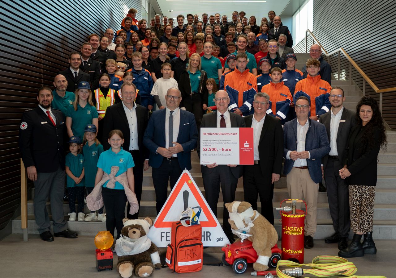 Die Stiftung der Kreissparkasse Rottweil für Soziales und Umwelt unterstützt die Blaulichtjugend mit einer Zuwendung in Höhe von 52.500 Euro. Damit wird die wichtige Arbeit der Blaulichtfamilie weiter gestärkt – ein unverzichtbarer Beitrag für die Sicherheit aller Bürgerinnen und Bürger.