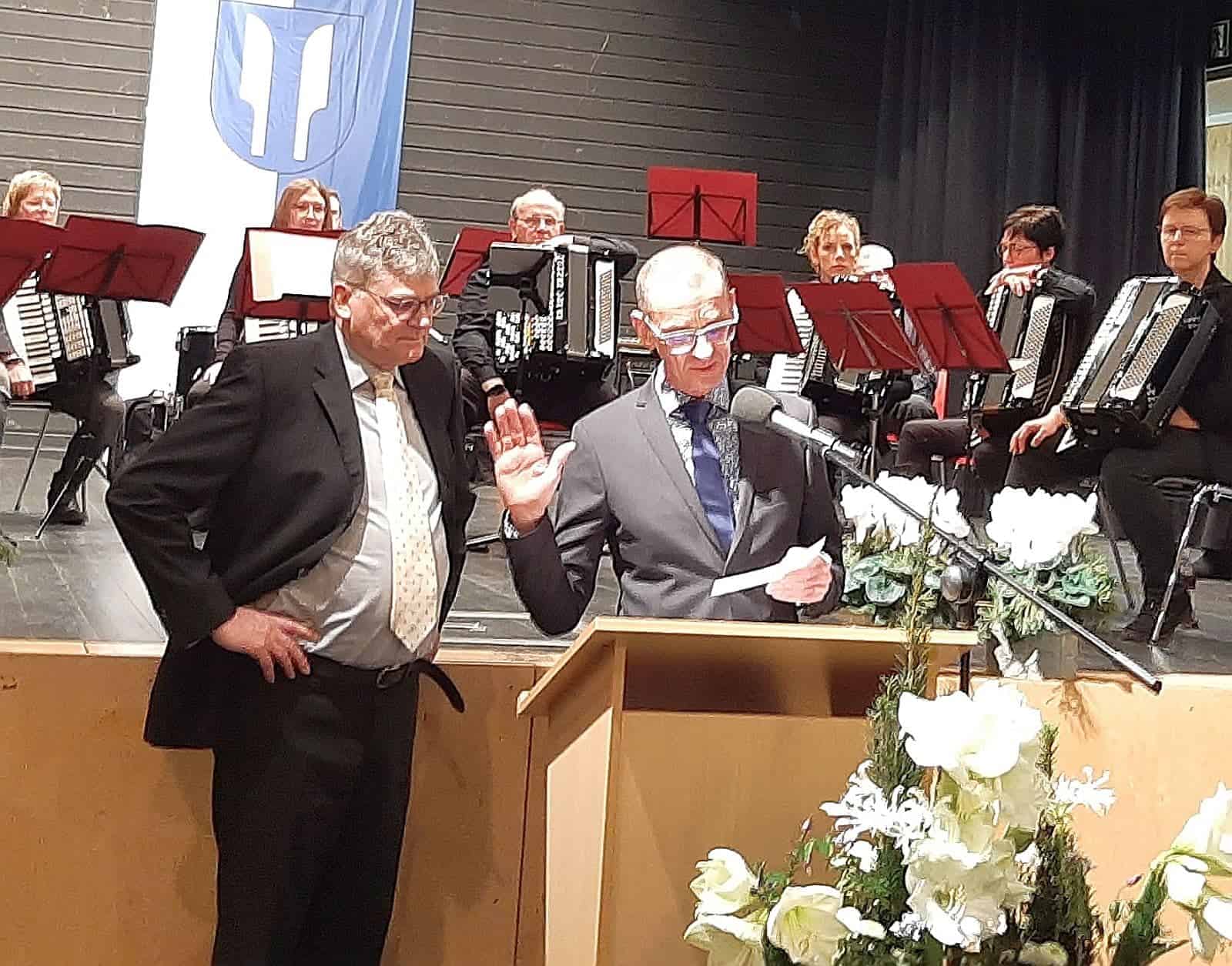 Schließlich würdigte Leichtle das große Engagement der Ehrenamtlichen in den Kirchengemeinden der Feuerwehr und den Vereinen als „das Herz unsrer Gemeinde“. Am Ende dankte Leichtle auch den Musikerinnen und Musikern des Handharmonika Orchesters, die den Abend musikalisch umrahmt hatten.