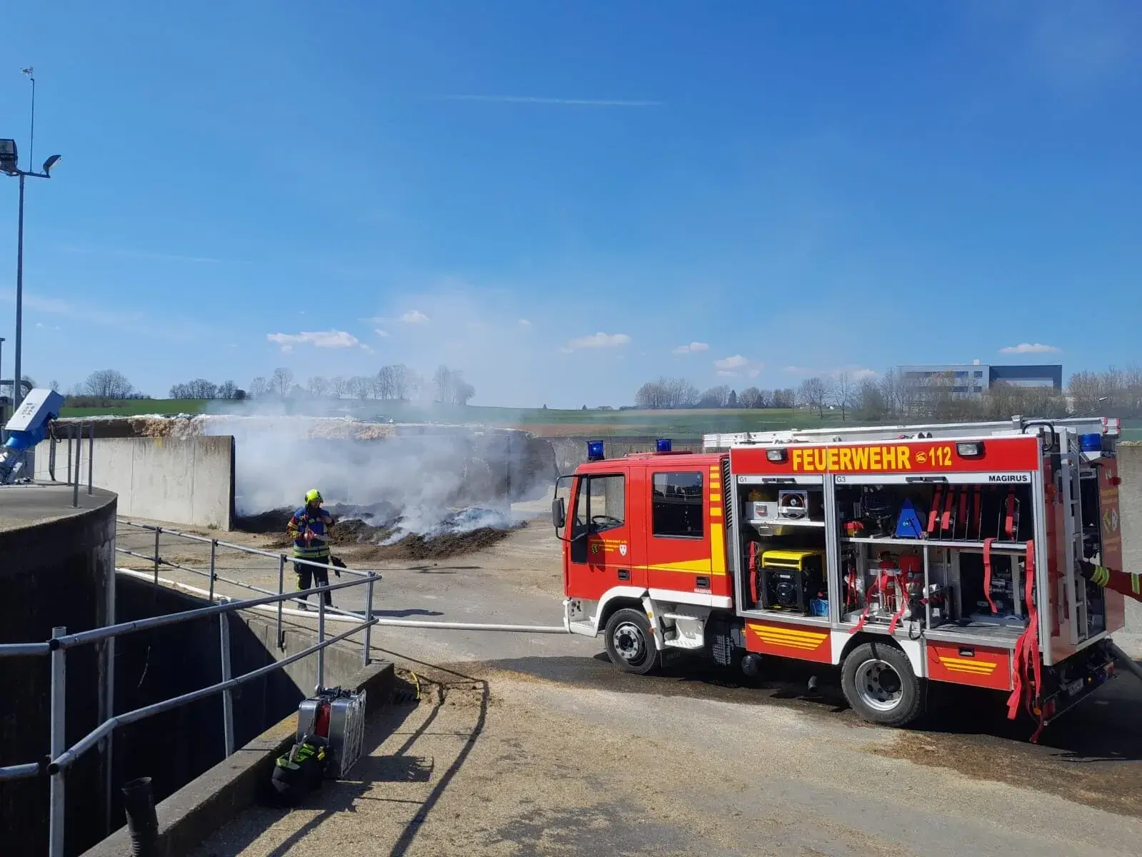 Da sich das Anwesen im Außenbereich befindet, wurde eine Wasserförderung mit einer Länge von 300 Meter aus dem naheliegenden Industriegebiet aufgebaut. Im Anschluss an die Löscharbeiten musste das Material aus der Anlage entfernt werden, um alle Glutnester abzulöschen zu können.