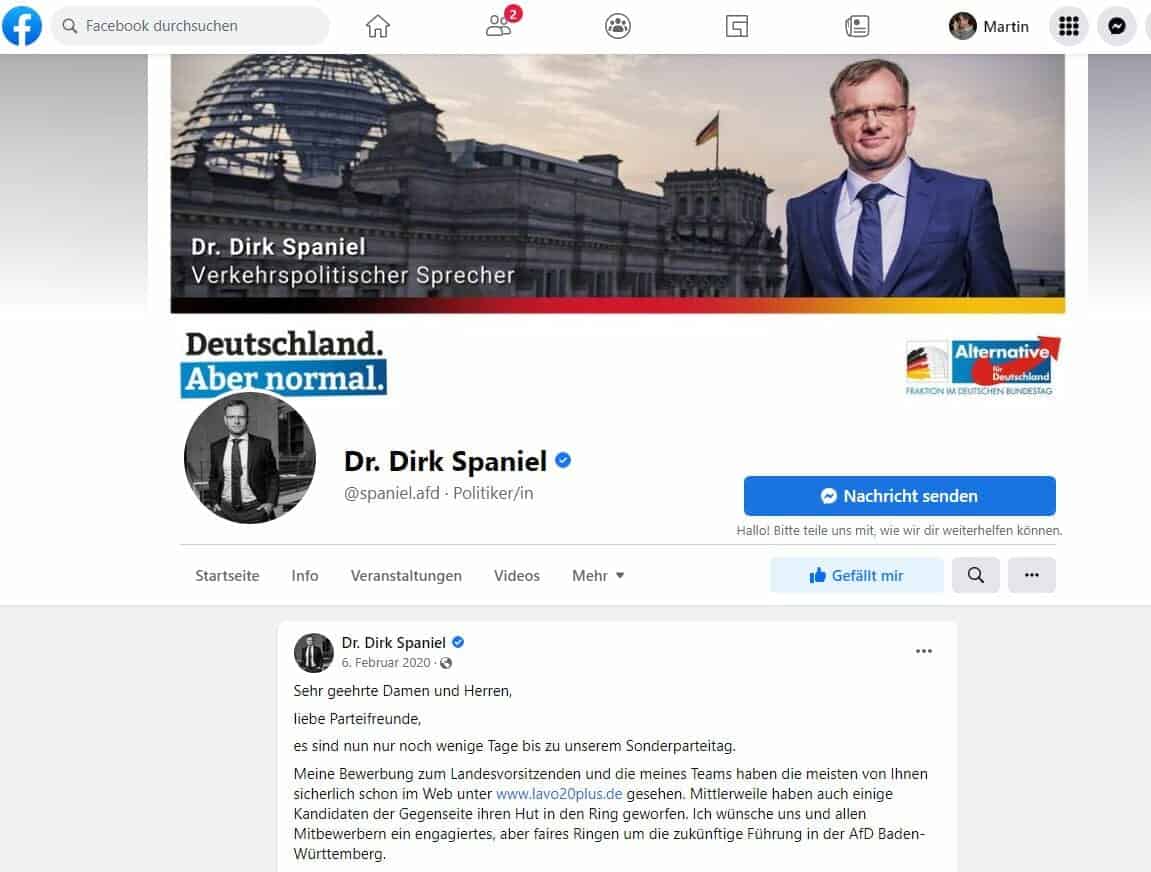 - Es trifft zu, dass es nicht ganz einfach ist, den Post auf Dr. Dirk Spaniels Facebook-Seite zu finden. Aber man findet ihn. Und da steht: