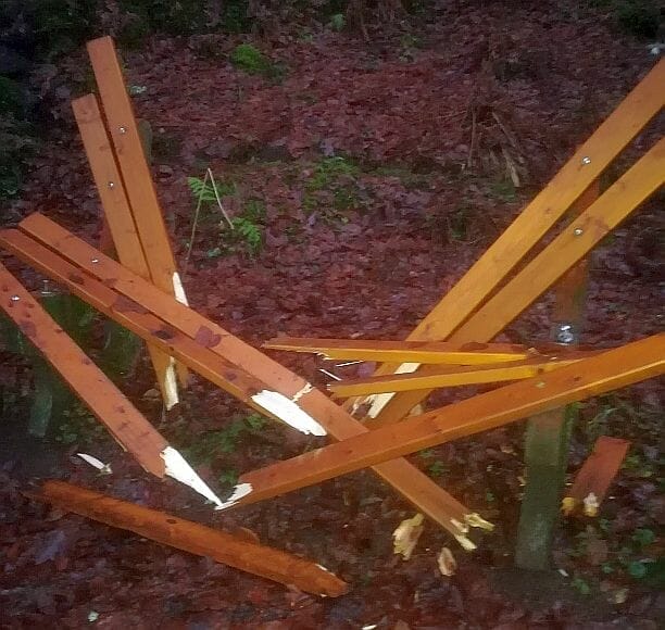 Unbekannte haben um den Jahreswechsel eine Spur der Verwüstung entlang des Panoramawegs hinterlassen: Zäune umgeworfen, Bänke kaputt geschlagen, Bäume umgeknickt und Gullideckel herausgerissen. Inzwischen teilt Andreas Kaupp von der Gemeindeverwaltung Näheres zu den Umständen mit. So habe die Gemeinde bereits am 29. Dezember „einen ersten Hinweis auf die Zerstörung einer einzelnen Sitzbank erhalten“.