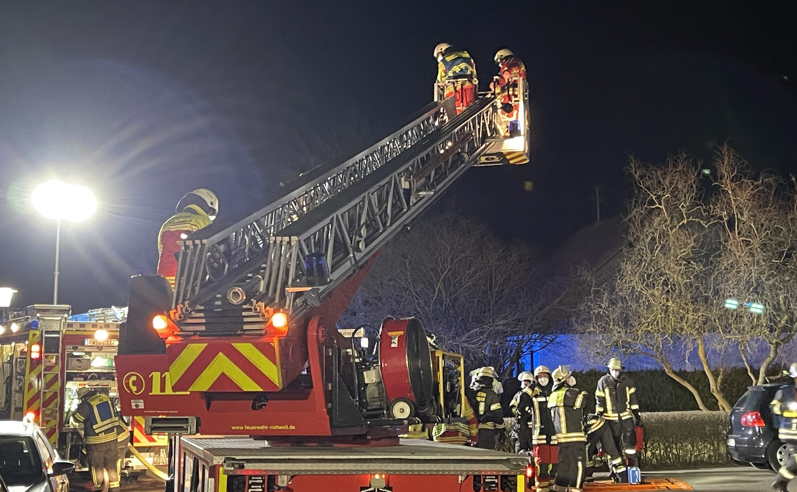 Die Feuerwehren aus Deißlingen und zur Unterstützung unter anderem auch mit der Drehleiter und weiteren Einsatzkräften aus Rottweil rückten an. Insgesamt rund 30 Kräfte allein seitens der Feuerwehr. Während zwei von diesen über die Drehleiter die Wohnung von außen erkundeten, drangen Kameraden unter Atemschutz in die Wohnung vor. Indem sie das Schloss knackten, die Tür so aufbrachen.