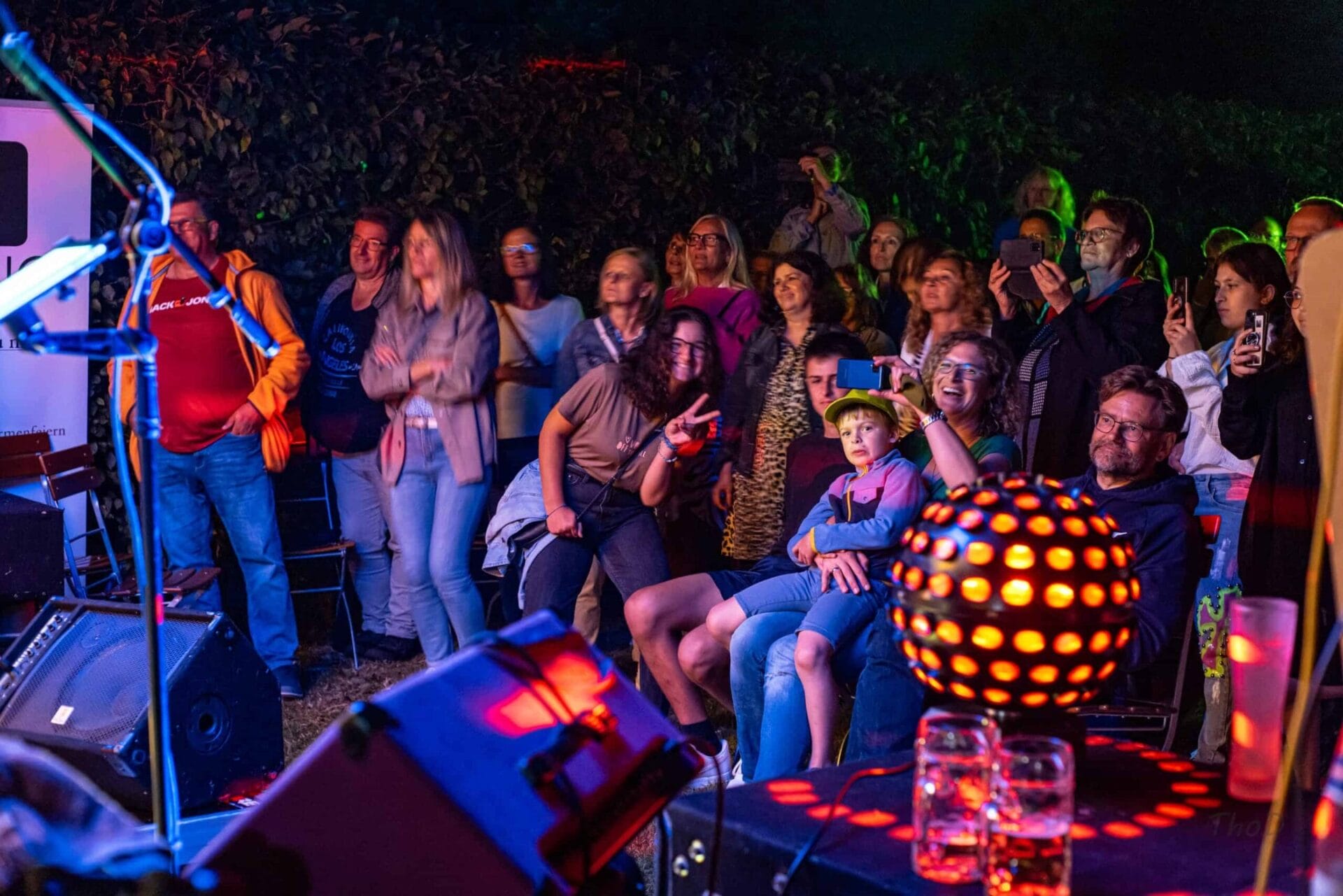 Die offenkundig wichtige und notwendige Einrichtung in VS-Schwenningen benötigt ihrerseits Unterstützung in Form von Spenden. Immer wieder finden sich Bands, die in enger Abstimmung mit dem Hospiz und oft aus eigenem Antrieb Benefizkonzerte veranstalten. So auch am Samstagabend in Deißlingen im und am Gasthaus „Bären“, wo die Bands Audio und Intakt zugunsten der Sternschnuppenbande spielten. Weit über 200 Gäste feierten das im voll besetzten Garten Gasthaus Bären Deisslingen. Und das mit einer super guten Stimmung bei angenehmen Temperaturen im Freien, mit Zugaben der Künstler bis knapp über 24 Uhr hinaus.