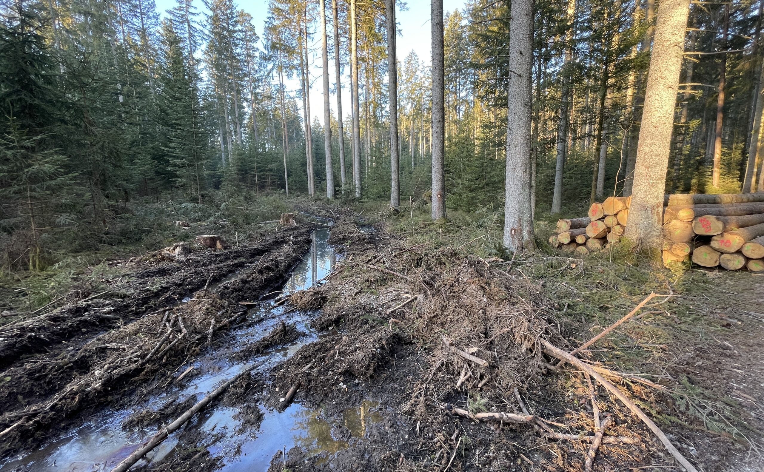 Der Winter war sehr nass zum Zeitpunkt des Holzeinschlags. Es wird trotzdem immer die größtmögliche Schonung des Bestandes und der Wege angestrebt. Der Dunninger Wald ist ein Wirtschaftswald und es werden durch dieses bewirtschaften auch die Mittel generiert um die Wege für die Erholung etc. zu unterhalten.