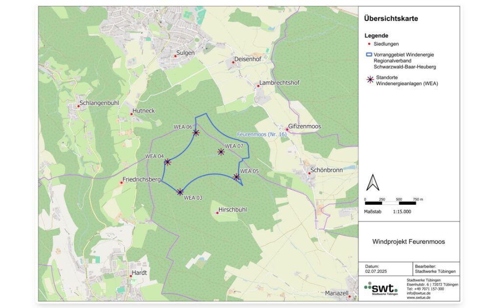 Eschbronn/Schramberg/Hardt. Im Rahmen des Genehmigungsverfahrens haben die Stadtwerke Tübingen (swt) einen Antrag nach dem Bundes-Immissionsschutz-Gesetz (BImSch) eingereicht. Diesen prüfe das Landratsamt Rottweil als Genehmigungsbehörde, berichtet Ann-Katrin Melinz von der Presseabteilung der Stadtwerke Tübingen.