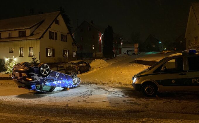 Zu schnell bei Glätte: Audi landet in Dunningen auf dem Dach