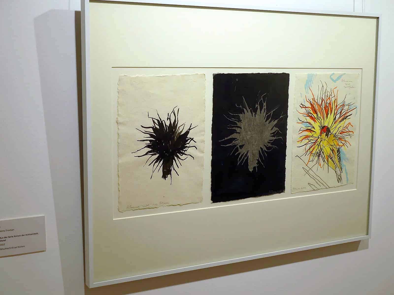 Was dem Künstler auf seinen Spaziergängen begegne, das finde Beachtung, „auch wenn es etwas Kleines ist. Die Achtsamkeit schult das Auge.“ Ramm-Weber führt diese Arbeiten auch auf Trevisans regelmäßige Meditationen zurück.