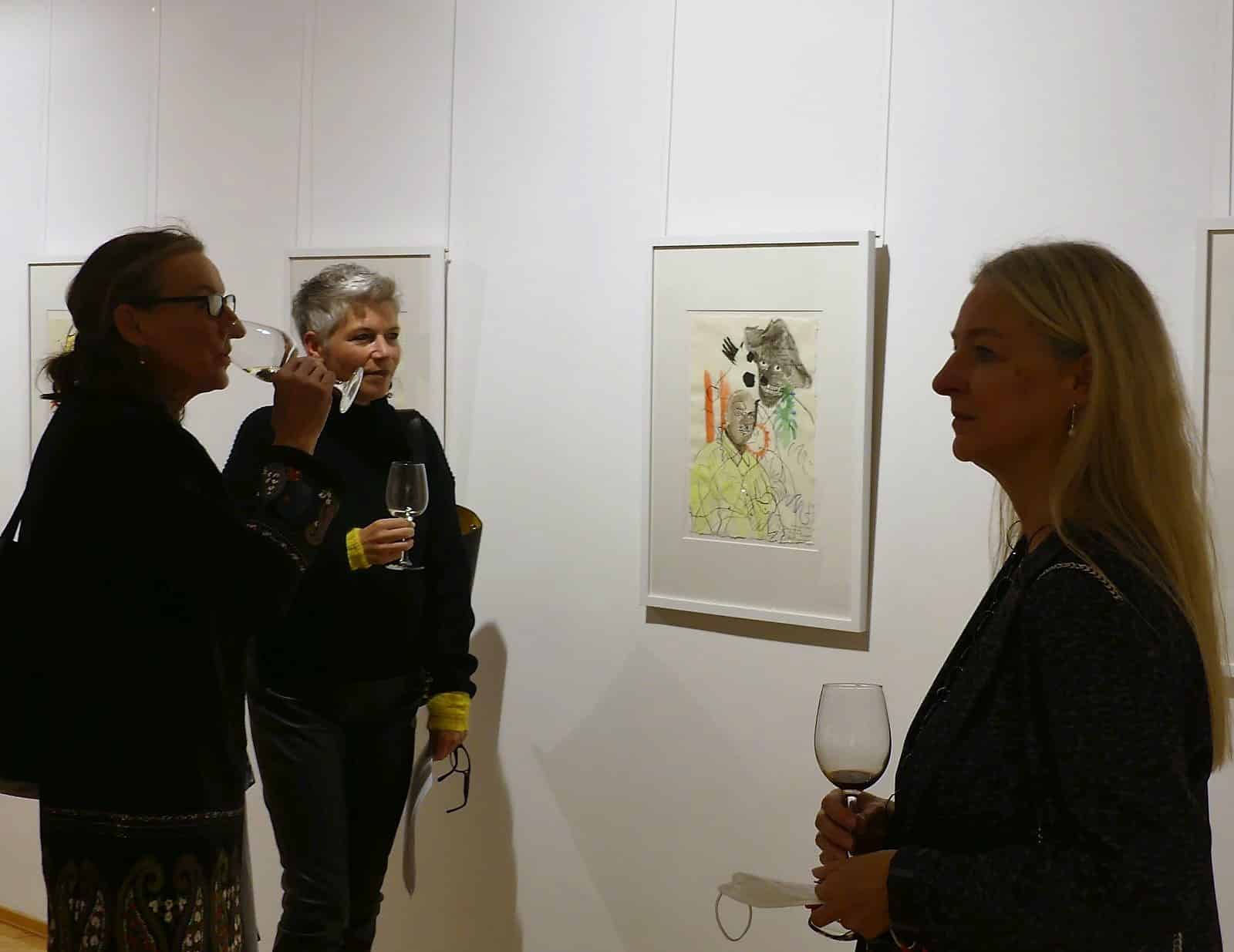 Begleitet von Saxofon- und Klavier-Musik gingen die Besucherinnen und Besucher durch die sanierten Räume der Kimmich-Galerie und betrachteten die knapp 50 Bilder und Zeichnungen und entdeckten darin die von Ramm-Weber beschriebenen Feinheiten.