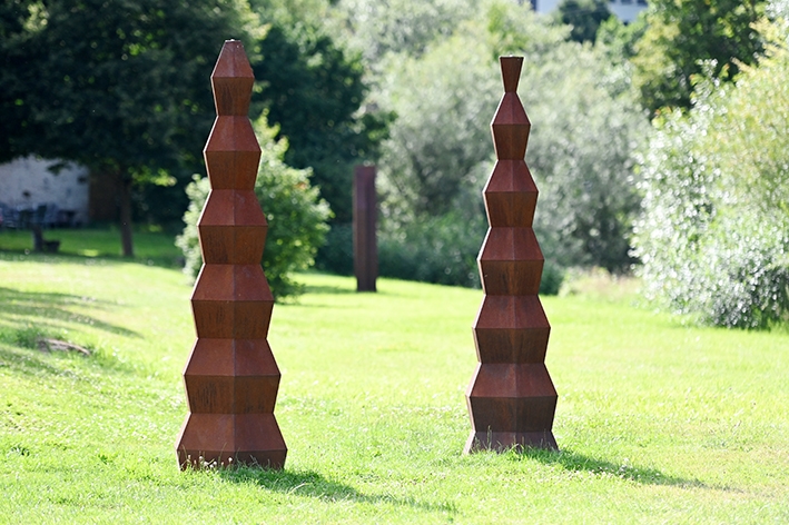 Konsequent lotet er seit vielen Jahren die Ausdruckspotenziale seiner bevorzugten Materialien Eisen und Baustahl aus. Feste Ordnung bringt er dabei mit Kräften der Offenheit in Balance. Und bricht den Anspruch von Dauerhaftigkeit der Metalle durch eine Patina aus Rost. Damit verweist er auch auf nie endende Prozesse der Veränderung und schafft obendrein samtige, erstaunlich vielgestaltige Oberflächen.