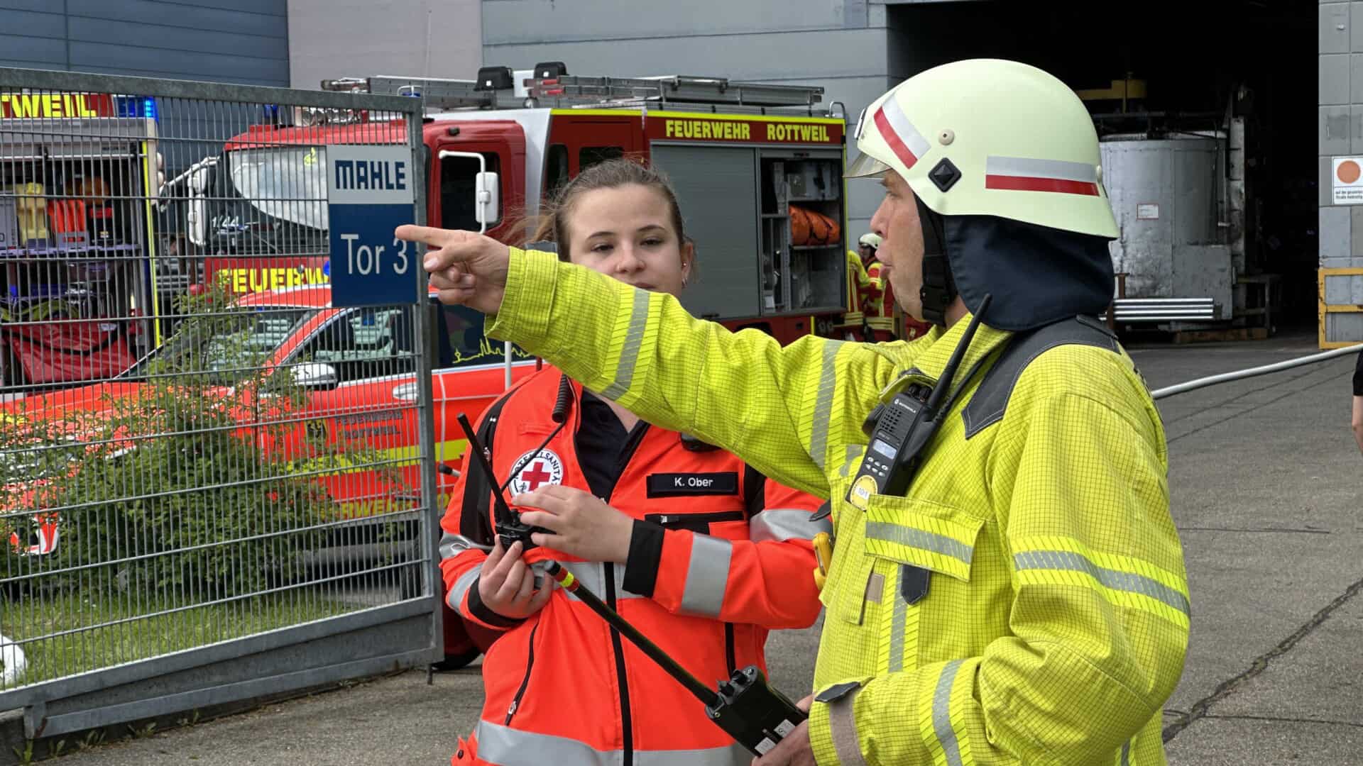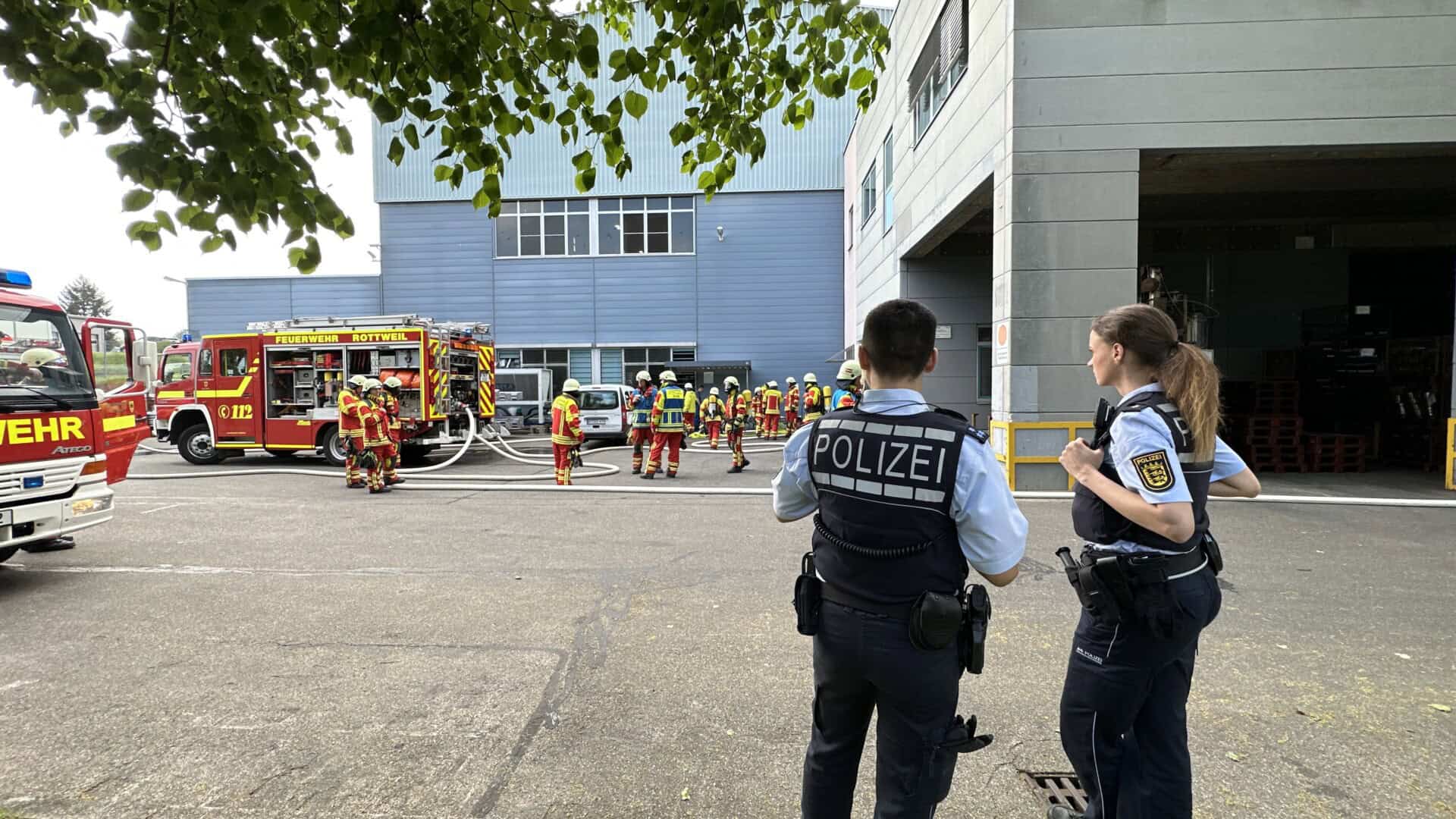 Nach ersten Informationen durch den Einsatzleiter, Stadtbrandmeister Frank Müller, brach das Feuer in der Schmiede von Mahle in Rottweil aus. Brandmelder hätten Alarm gegeben, insofern habe es wie vorgesehen funktioniert. Der Alarmton ist während des laufenden Einsatzes gut zu vernehmen.