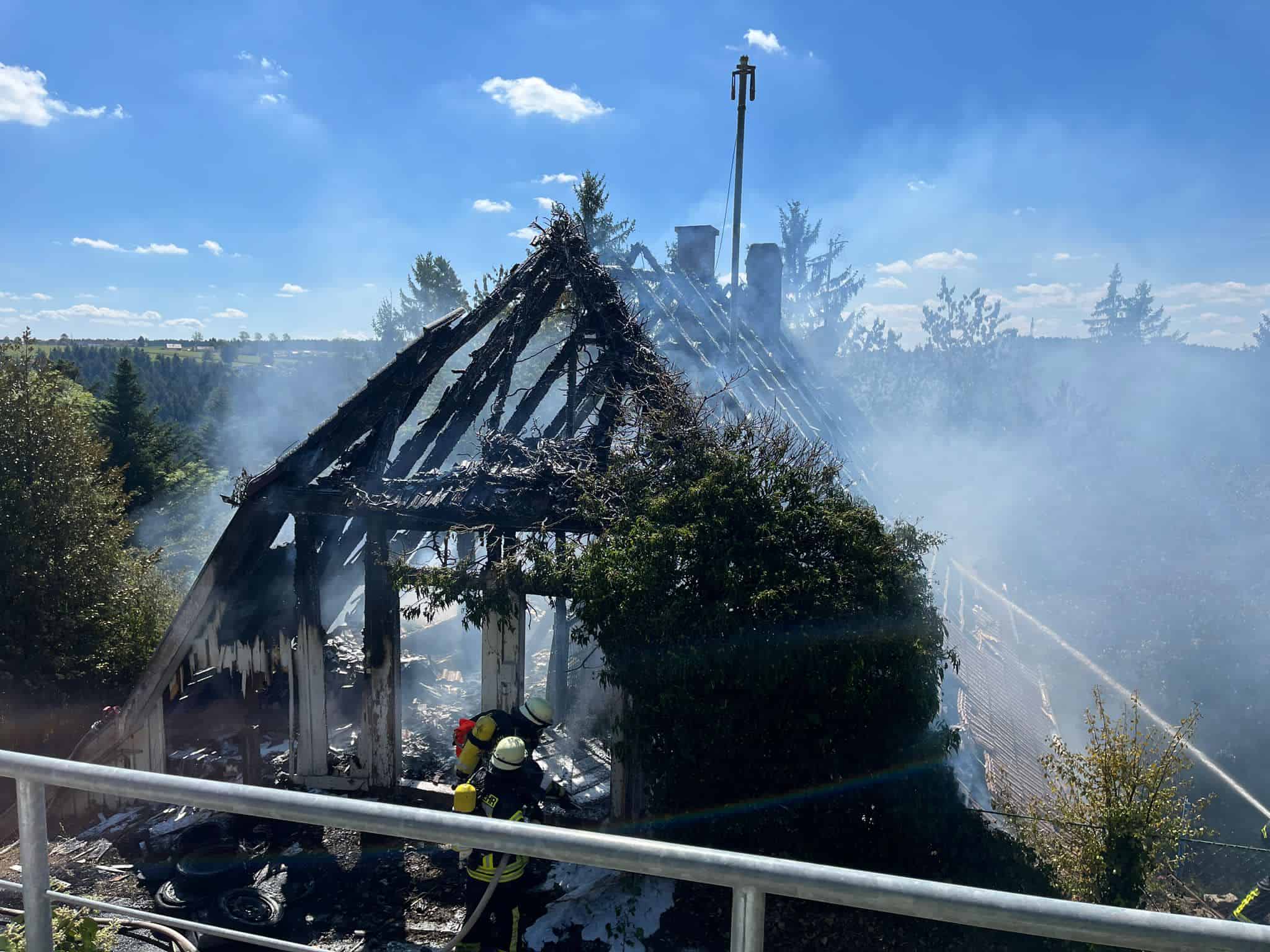 Update, die Zusammenfassung der Polizei: Aus bislang unbekannter Ursache ist am Donnerstagmittag ein Gebäude auf der Straße „Unterdorf“ in Brand geraten. Ein Nachbar teilte gegen 11.30 Uhr mit, dass Flammen aus dem Dach des unbewohnten Hauses nebenan schlagen. Bei Eintreffen der ersten Kräfte der Feuerwehr stand der Dachstuhl bereits im Vollbrand. Trotz eines Großeinsatzes der Feuerwehr konnte das Gebäude nicht mehr gerettet werden und brannte nahezu vollständig ab. Die Löscharbeiten der Feuerwehr sind weiterhin im Gange. Es gab keine Verletzten. Die Höhe des Schadens ist noch nicht bekannt. Das Polizeirevier Schramberg hat die Ermittlungen zur Brandursache aufgenommen.