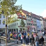 Samstagmittag auf dem Friedrichsplatz in Rottweil. Vor Stunden war dieser Herbsttag sonnig, jetzt ist er etwas kühl und schattig. Aber einerlei: Die örtliche Kunstszene feiert sich und ihren neuesten Coup – den zentralen Rottweiler Platz vom Autoverkehr befreit zu haben. Die Blasmusik spielt, es herrscht ein wenig angestrengte Lockerheit. Prosecco fließt, Stößchen.