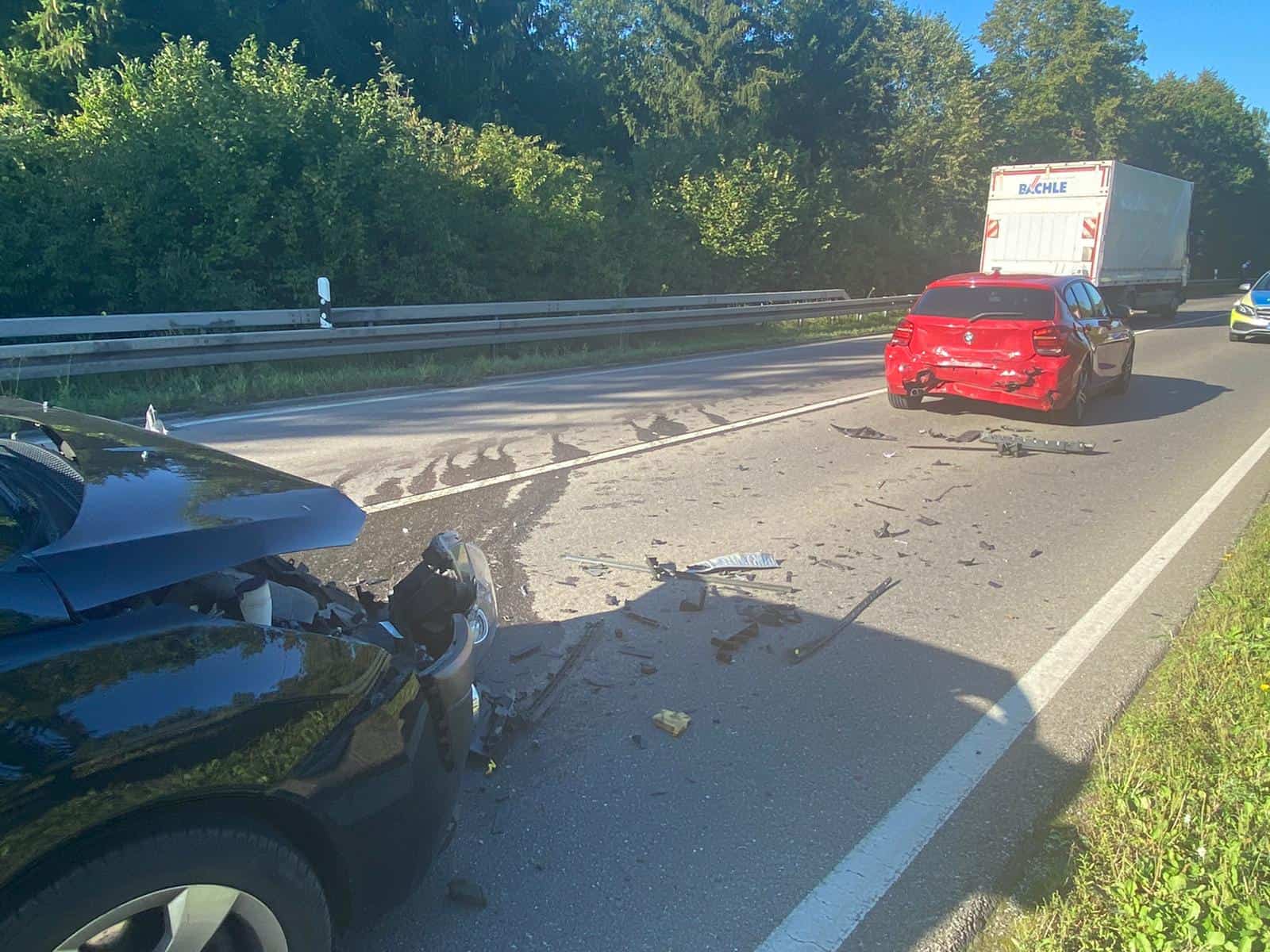 Bei dem Unfall sind nach ersten Informationen durch einen Sprecher des Polizeipräsidiums Konstanz drei Menschen verletzt worden, einer davon schwer. Daher sei der Rettungshubschrauber Christoph 11 angefordert worden. Der Schwerverletzte kam in eine Freiburger Klinik.