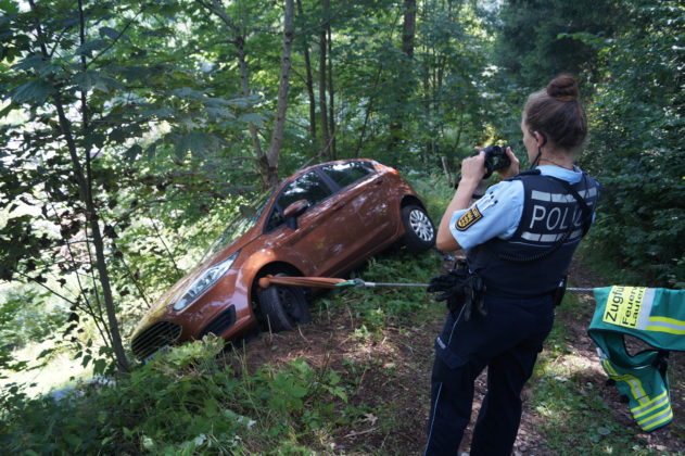 Lauterbach. Zu einem spektakulären Unfall in Lauterbach wurden am Freitagvormittag Feuerwehr, Rotes Kreuz, Polizei und der Bauhof gerufen. Ein Zollbeamter in Zivil hatte versucht mit seinem Dienstfahrzeug über den Schwabenhof und einen steilen unbefestigten Waldweg Richtung ehemaliges Haus Berlin zu kommen. Das Auto rutschte weg. Es blieb bei Sachschaden, verletzt wurde niemand.