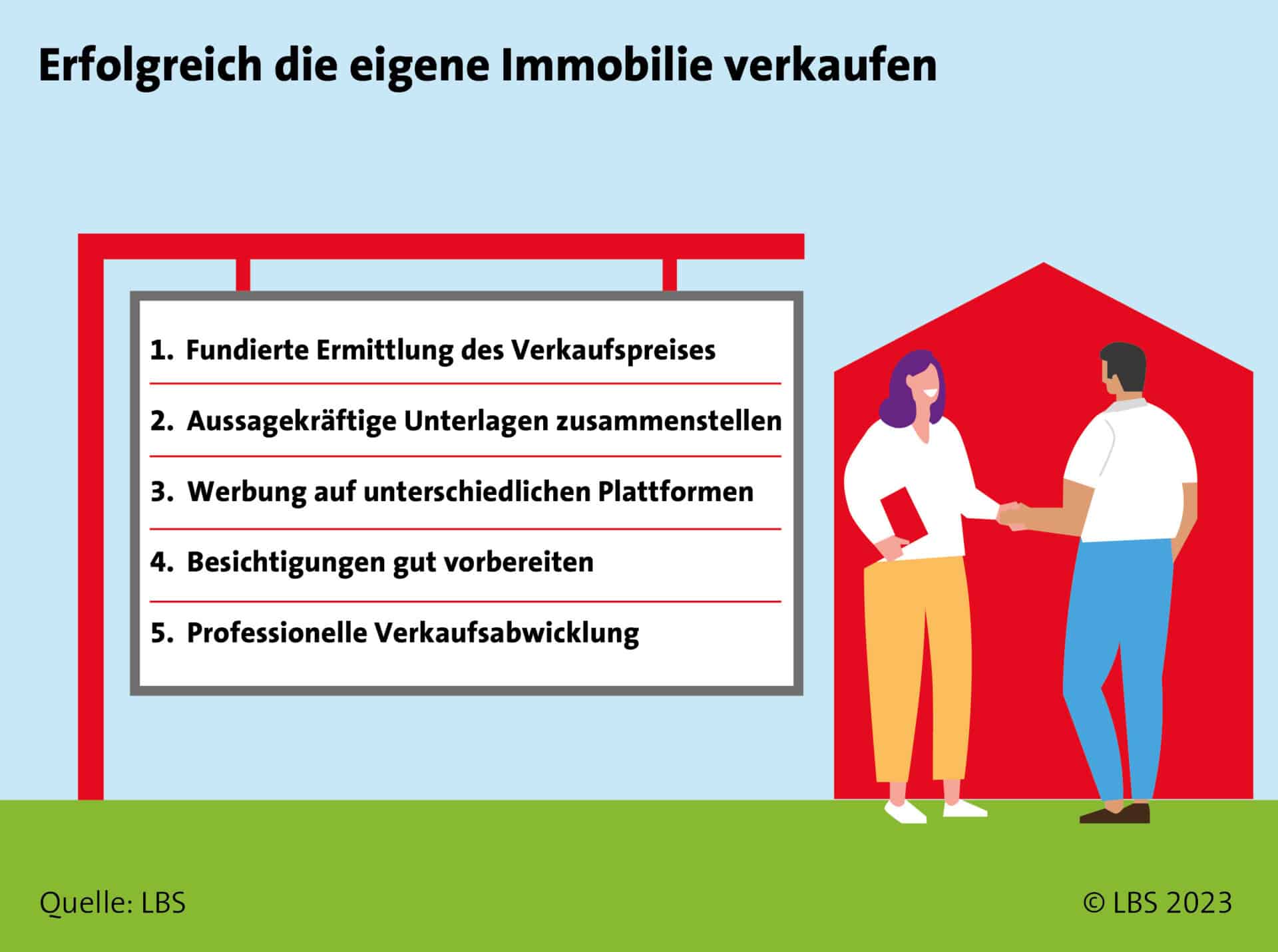 Inhaltlich und optisch informative wie ansprechende Unterlagen bilden das Fundament für einen gelungenen Immobilienverkauf. Ziel ist, sowohl den Kopf als auch das Herz der Interessenten anzusprechen. Notwendige Unterlagen sind etwa ein Lageplan und aktuelle Grundrisse. Doch auch der Begleittext zum Objekt, Fotos oder Illustrationen sind von großer Bedeutung. Um das Interesse für die Immobilie auch emotional zu wecken, ist es wichtig, sie richtig in Szene zu setzen. „Dazu gehört nicht nur, sie aufzuräumen und eventuell zu säubern. Auch Schönheitsreparaturen oder ein frischer Anstrich tragen dazu bei, dass Haus oder Wohnung bestmöglich präsentiert werden“, empfiehlt LBS-Experte Dominik Müller.