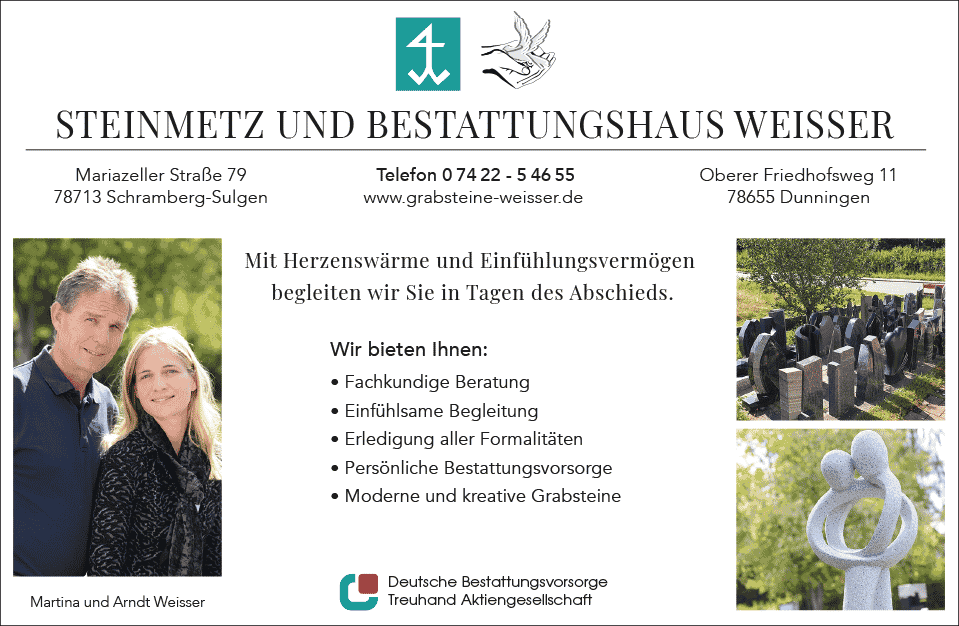 Hier veröffentlichen wir die uns von den Standesämtern im Landkreis Rottweil und von unseren Lesern zur Verfügung gestellten Informationen zu den Geburten, Eheschließungen und Sterbefällen. Wenn Sie selbst hier einen Eintrag veröffentlichen lassen wollen, dann klicken Sie bitte hier.