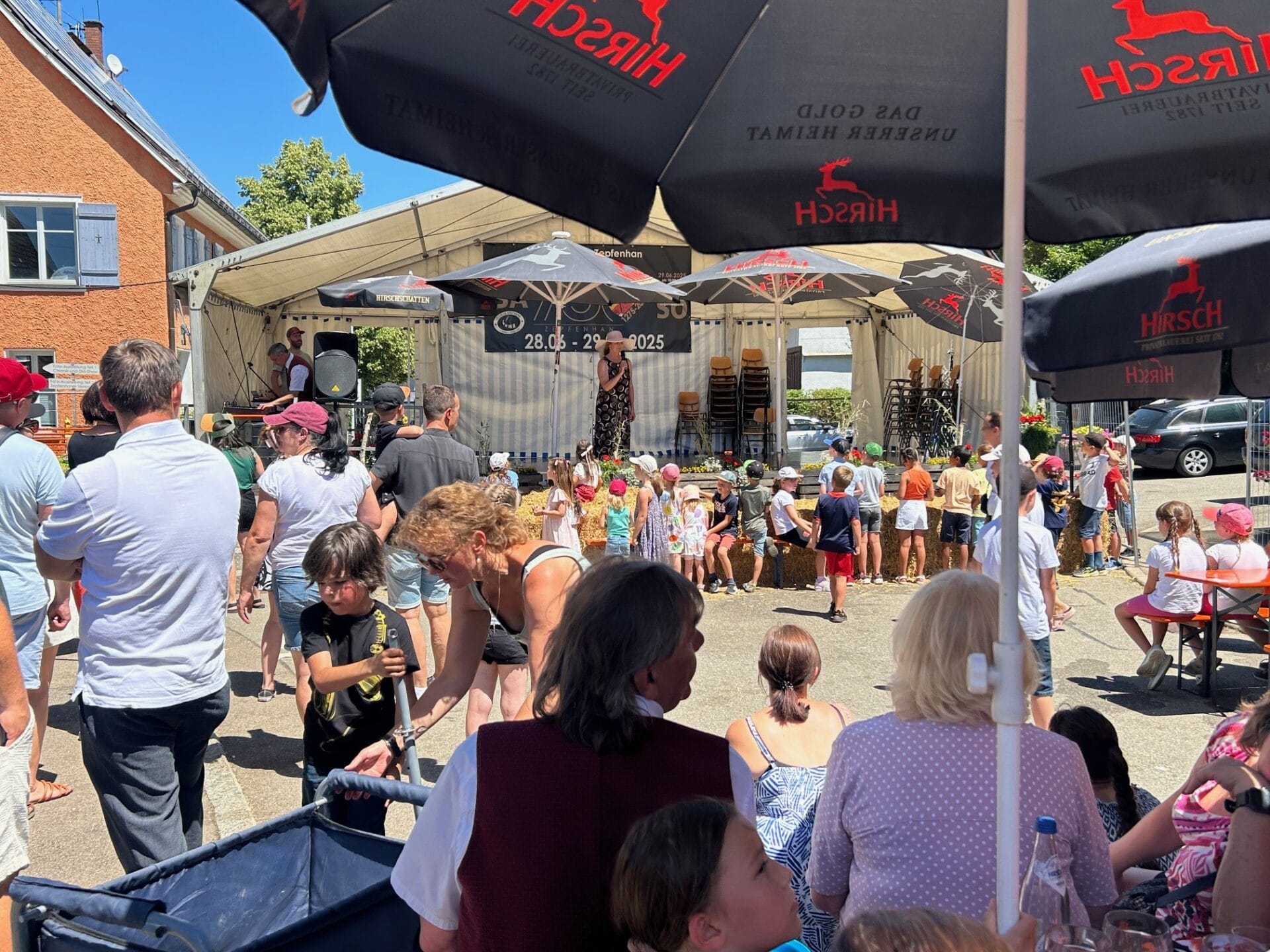 Als erstes kamen die Kinder des Kindergarten Herzstückle, unter der Leitung von Vero Schatz, als Dorfkinder auf die Bühne. Sie zeigten uns, wie das Leben auf dem Land so funktioniert. Aber nicht nur mit Ihrem Beitrag auf der Bühne haben sie zum Gelingen des Festes beigetragen. Auch durch die tolle Idee mit der Spielstraße hinter dem Festzelt und dem riesigen Blickfang „Fußballdart“ wurde unser Fest bereichert.