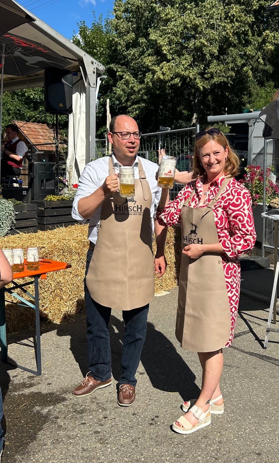 Beim anschließenden Fassanstich durften die beiden dann gemeinsam ans Werk – mit Erfolg!