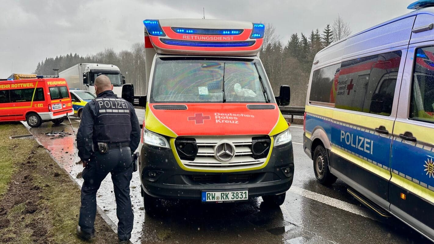 Am Dienstagvormittag, gegen 11.15 Uhr, ist es auf der Autobahn 81 zwischen den Anschlussstellen Rottweil und Oberndorf zu einem schweren Unfall gekommen, bei dem zwei Personen schwer und ein Autofahrer tödlich verletzt worden sind.