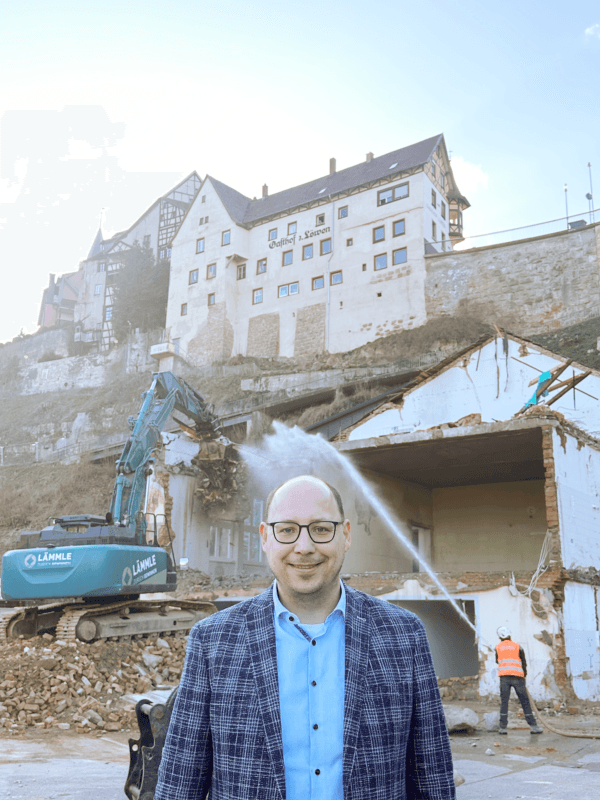 „Mit dem Abriss des alten Gaswerks machen wir den Weg frei für eine zukunftsweisende Nutzung dieses Geländes. Hier wird ein zentraler Veranstaltungsort für die Landesgartenschau entstehen, der auch darüber hinaus einen Mehrwert für die Stadt bieten wird“, so Oberbürgermeister Dr. Christian Ruf, der sich auch vor Ort ein Bild von den Abbrucharbeiten machte.