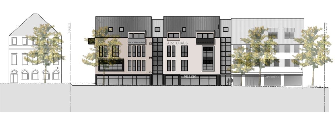 Das künftige Gebäude, das direkt an die Königstraße 19 angeschlossen werden soll, werde große Praxen beherbergen, heißt es. Der Trend gehe zur Gemeinschaftspraxis. Die Fertigstellung war ursprünglich für 2023 geplant, inzwischen heißt es, 2024 solle das Bauprojekt abgeschlossen sein. Die Projektentwicklung liegt bei der Sailer & Sailer Immobilienmanagement GmbH, die Planung bei Ettwein Architekten und der Sailer Landschaftsarchitektur GmbH.