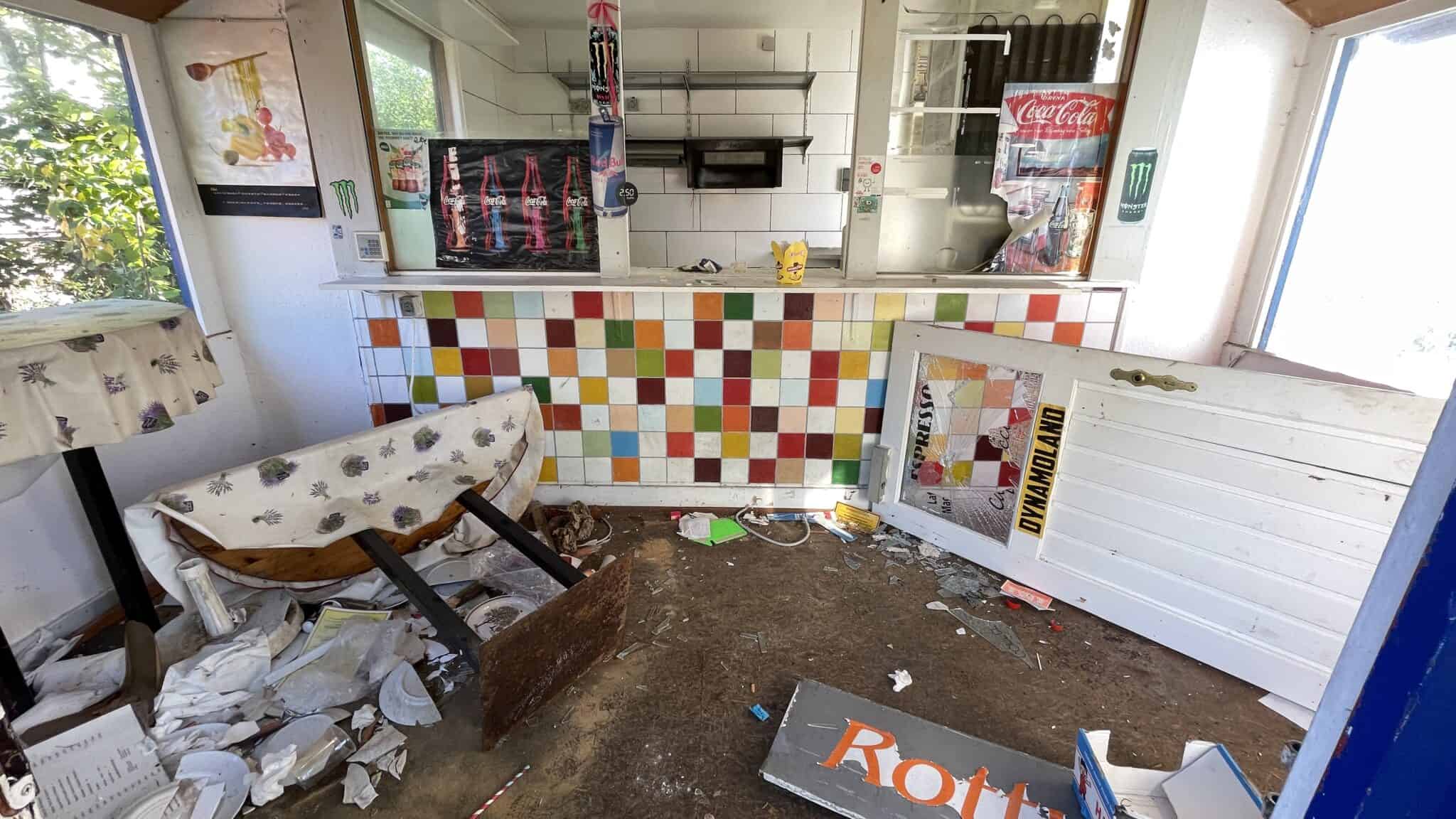 Der Imbiss „Zum Engel“ in der Rottweiler Königstraße war in den vergangenen Monaten Ziel von Vandalen. Wo es früher Currywurst und Bier gab, herrscht jetzt das blanke Chaos. Umgeworfenes Inventar, zerdeppertes Porzellan, eine liegende Tür mit eingeschlagener Scheibe. Das Häuschen, einst ein beliebter Treffpunkt hungriger und wohl vor allem auch durstiger Menschen, steht da, als wäre es einfach verlassen worden. Und vergessen. Eine Pommes-Packung wartet auf dem Tresen – ja, auf was denn?