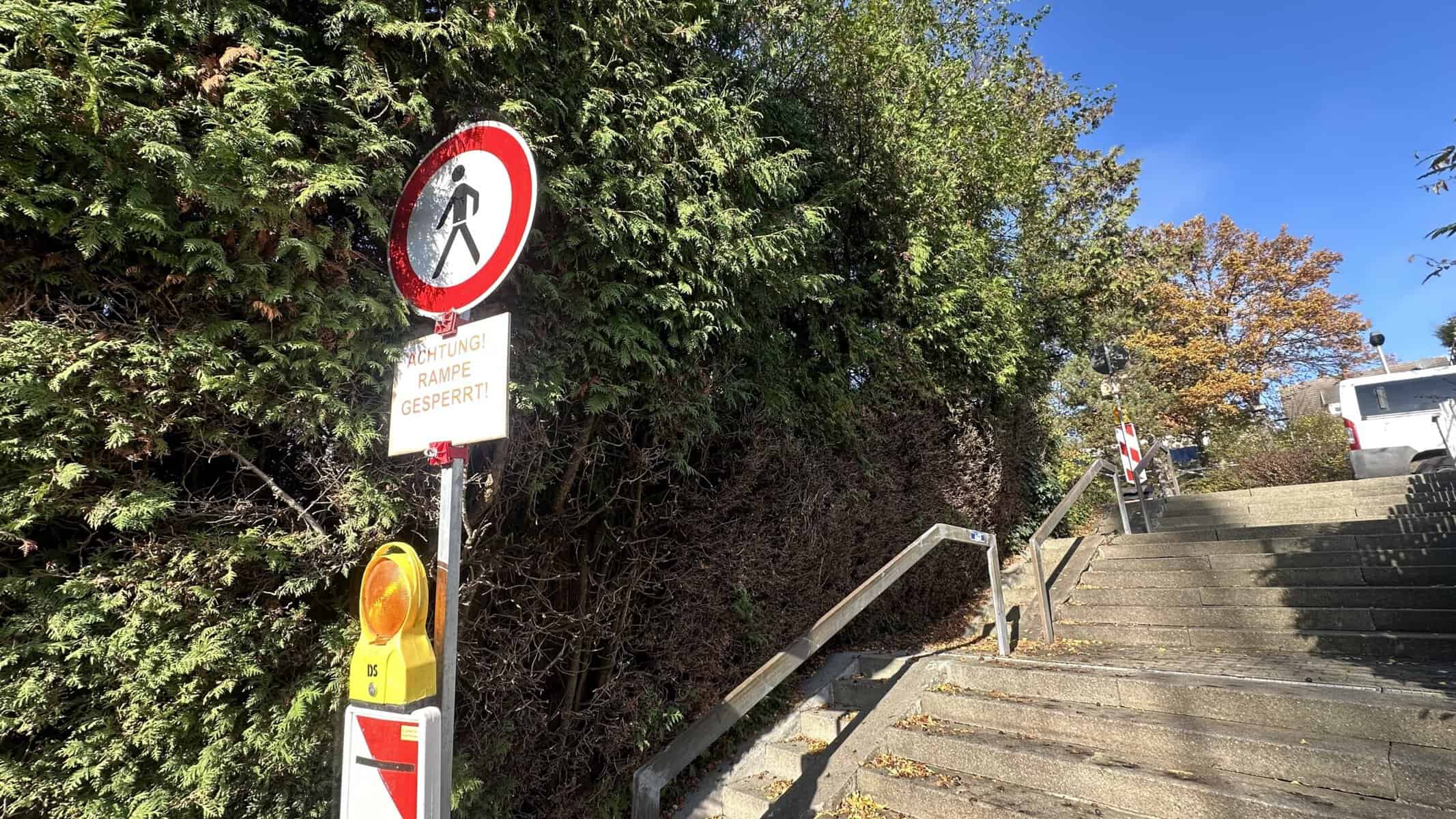 Für Klaus W. „ein Unding“, ein „Unsinn“, ein „Irrsinn“. Denn 2026 würde die Treppe an dem Verbindungsweg, in den seine Hecke ragt, nach seinen Informationen ohnehin neu gemacht (inzwischen soll es schon das Frühjahr 2025 sein). Was er offenbar glaubt: Dann könne die Stadt doch die Treppe an seine Hecke anpassen. Und bis dahin könne sie doch Aluschienen anbringen als Ersatz für die zugewachsenen Rampen. Was die Stadt aber möchte: dass die Hecke zurückgeschnitten oder ganz entfernt wird, damit der Weg jetzt frei wird und damit in einigen Monaten die Bauarbeiten an der Treppe überhaupt erst stattfinden können.