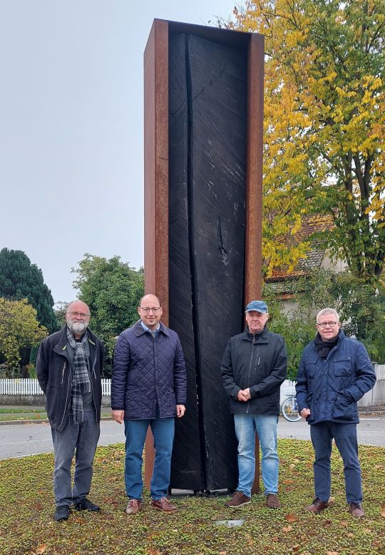 Die seit 2009 das Stadtbild prägende Skulptur auf dem Stadion-Kreisel geht in das Eigentum der Stadt Rottweil über. Mit großem Dank nahmen Oberbürgermeister Dr. Christian Ruf und Fachbereichsleiter Marco Schaffert die Schenkung des in Zell am Harmersbach lebenden Künstlers Armin Göhringer entgegen.