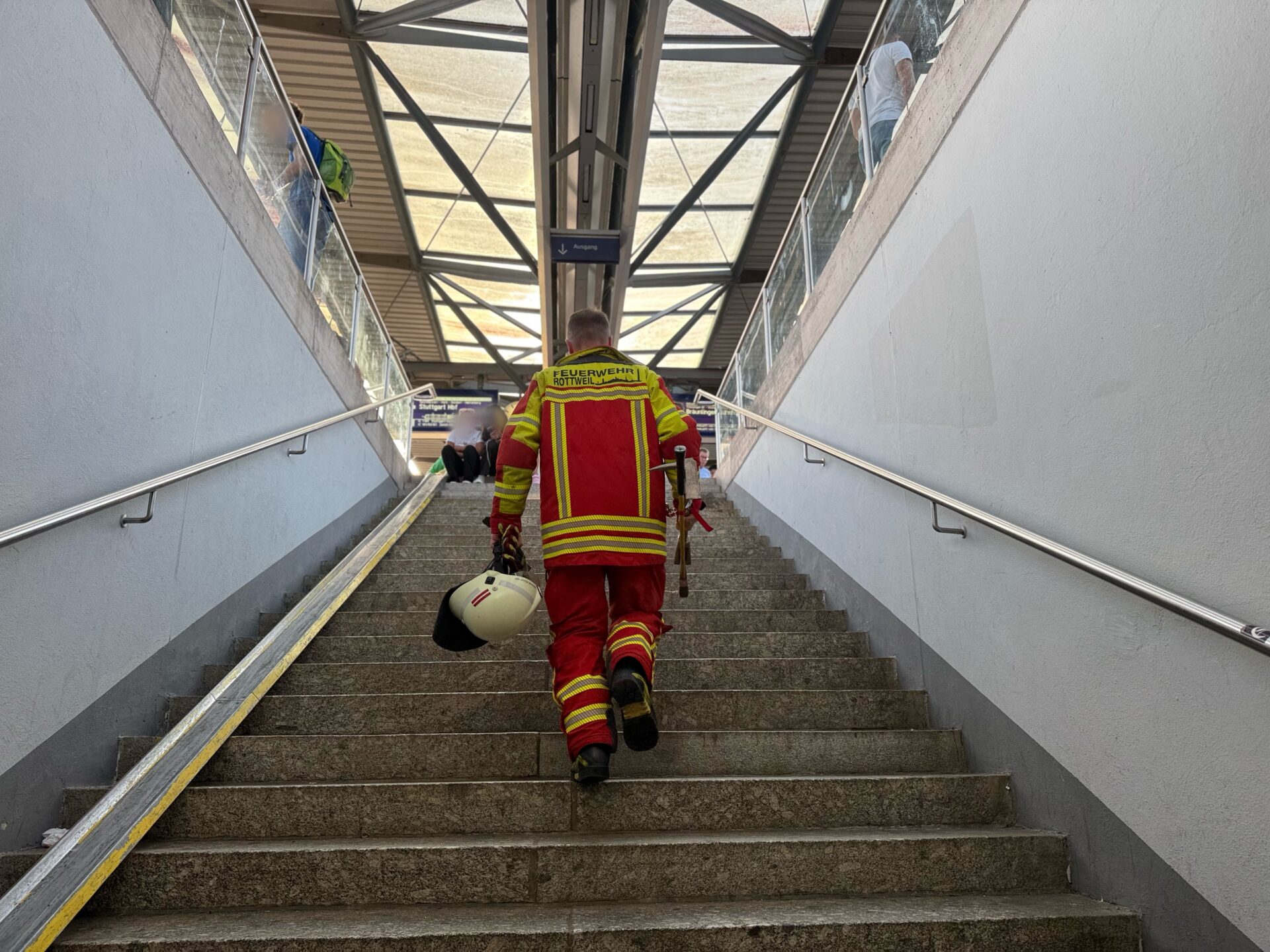 Was für eine Reise: Ein Mann, der eigentlich weiter Richtung Stuttgart wollte, einen Trip mit vier Umstiegen vor sich hatte, blieb im Aufzug zum Ferngleis des Rottweiler Bahnhofs stecken. Zwei mögliche Verbindungen verpasste er dadurch. Er nahm es gelassen, freute sich sichtlich, dass ihm Hilfe zuteil wurde.