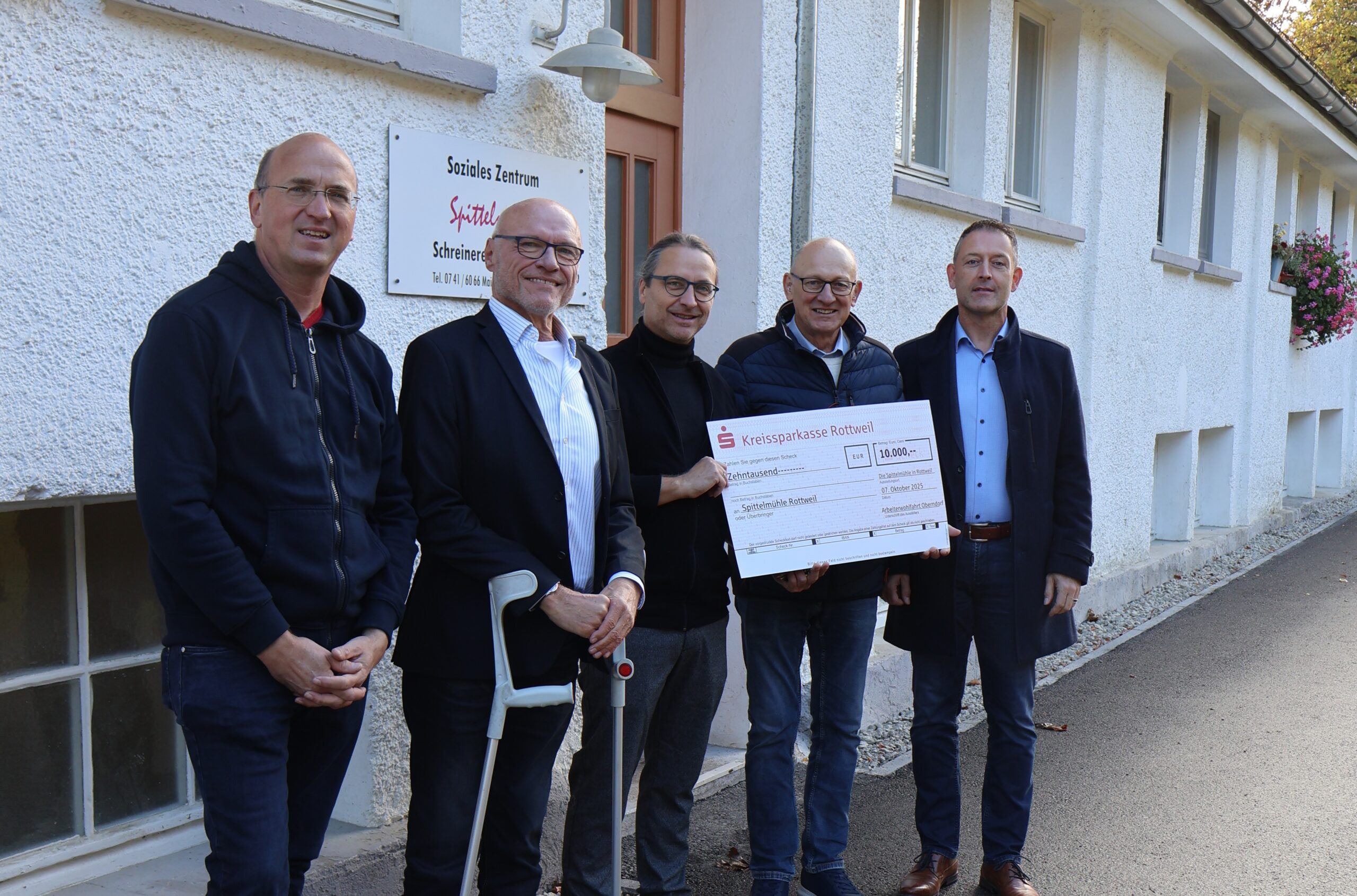 Der AWO-Ortsverein Oberndorf hat eine Spende in Höhe von 10.000 Euro an die Spittelmühle, einer stationären Einrichtung der Wohnungsnotfallhilfe der AWO Soziale Dienste gGmbH, übergeben. Mit dem Betrag soll der geplante Anbau der Einrichtung unterstützt werden – „ein zukunftsweisendes Projekt, das vor allem wohnungslosen Frauen besseren Schutz und gezieltere Unterstützung bieten soll“, schreibt der Ortsverein dazu.