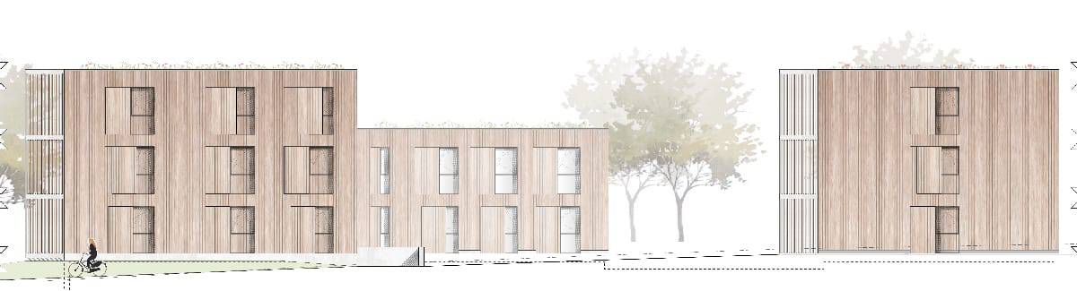 Dass es den Verantwortlichen der Stadt ernst war mit dem Bauen, zeigt, dass sie bereits ein Architekturbüro mit der Planung beauftragt hatten. Und was von dort geliefert worden war, hat Architekt Stefan Kamm dem Ausschuss vorgestellt: Zwei Gebäudeteile, die sich um einen Innenhof gruppieren. Das obere Gebäude soll acht, das untere 17 Wohneinheiten enthalten. Die Fassade soll aus Holz sein, bestehend auf regionaler Fichte. Geheizt werden soll mit Fernwärme.