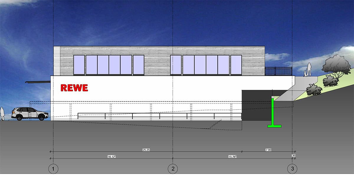 Entstehen soll im Erdgeschoss ein großflächiger Lebensmittelvollsortimentsmarkt mit integrierter Bäckerei und Café und eine Kinderbetreuungseinrichtung mit Freibereichen im ersten Obergeschoss. Die Planung dient der Verbesserung der Grundversorgung. Zudem soll die Ansiedlung der Kinderbetreuungseinrichtung (zwei U3- und zwei Ü3-Gruppen für insgesamt ca. 70 Kinder) mit dazu beitragen, dem gestiegenen Bedarf nach Kinderbetreuungsangeboten zu entsprechen. Durch die Planung entstehen Synergieeffekte zwischen den angedachten Nutzungen im Sinne einer Stadt