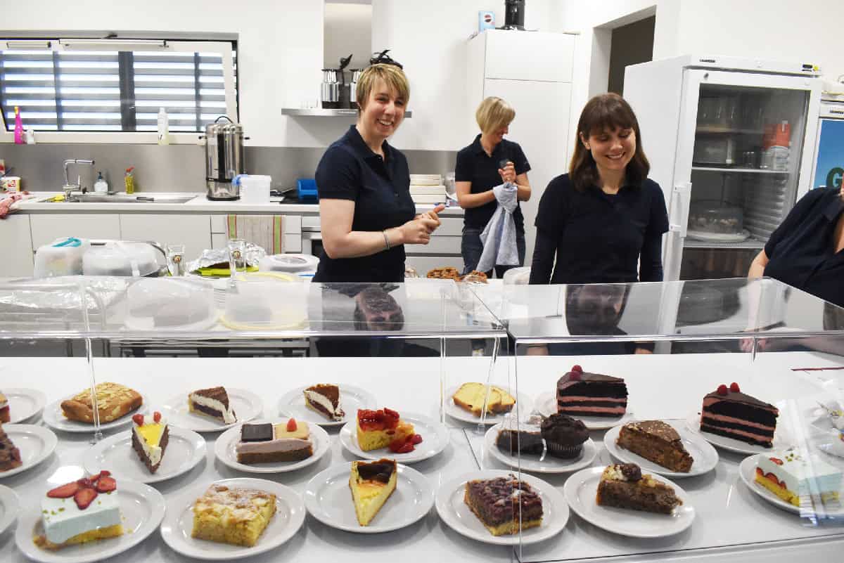 Kaffee und Kuchen warten im oberen Stockwerk
