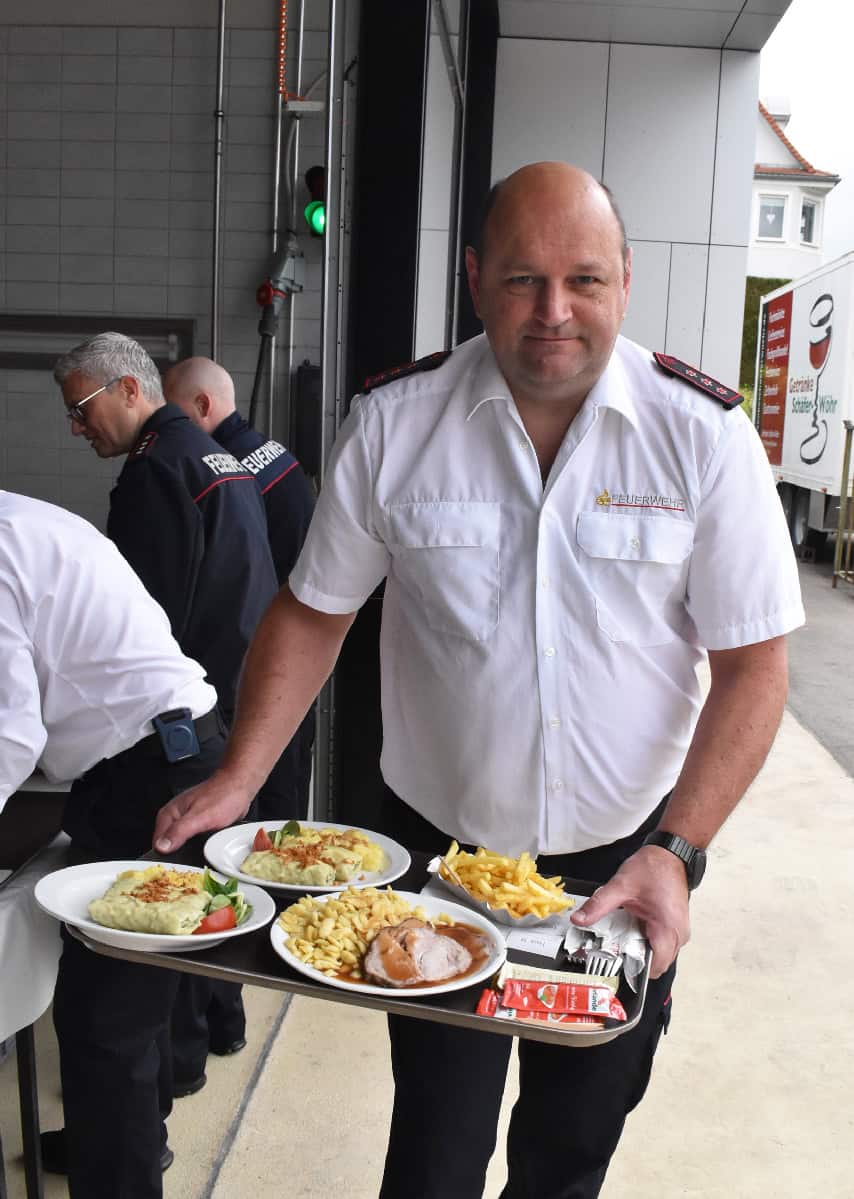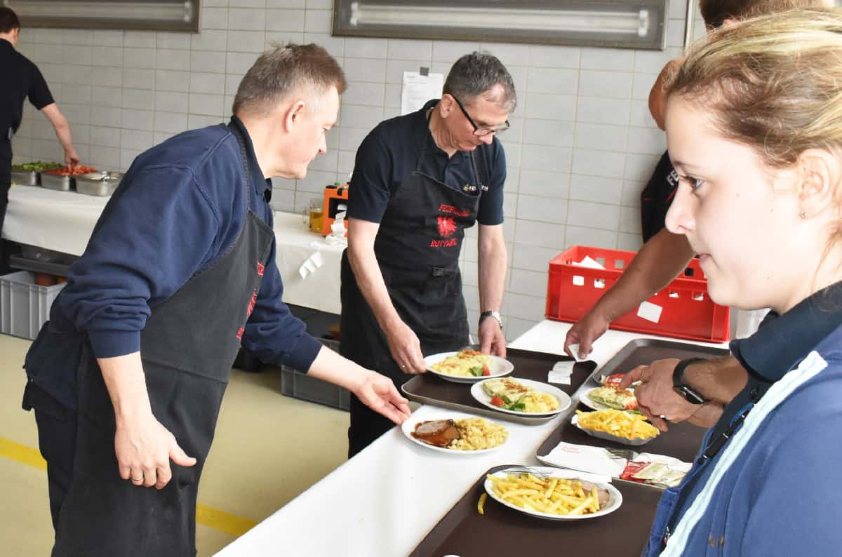 Leckeres Essen, von Angehörigen der Freiwilligen Feuerwehr zubereitet.