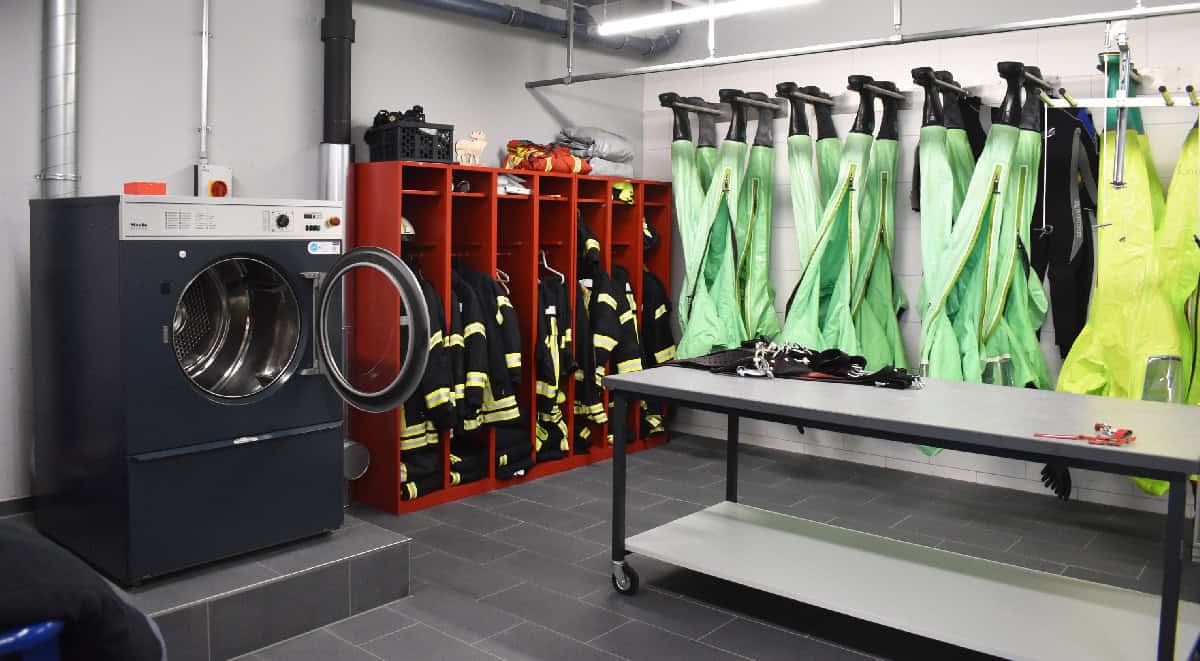 Hier wird die kontaminierte Einsatzkleidung sofort gewaschen