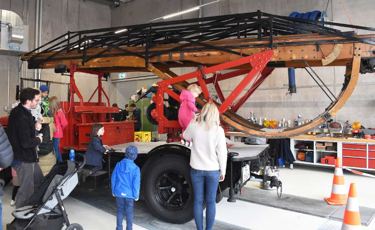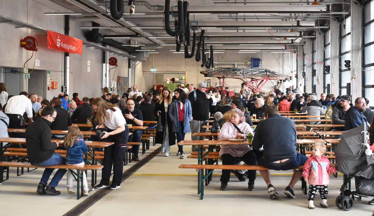 Vor allem Familien, so war der Eindruck, nutzten die Gelegenheit, nicht nur die Fahrzeuge und die Räumlichkeiten in Augenschein zu nehmen und dem Nachwuchs zu zeigen, sondern auch das Essens-Angebot in der Fahrzeughalle.
