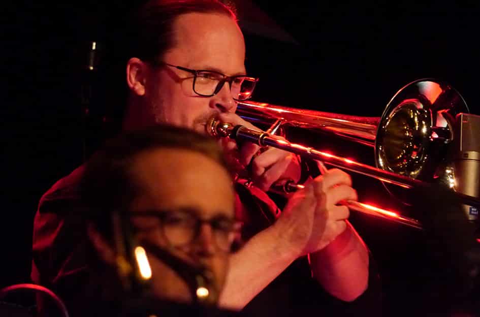 Rappelvoll die Bühne, der Saal, die Klangräume, wenn die Stücke vom neuesten Album „Jackets XL“ (und nicht nur die) in zwei temperamentvollen Sets von zwei temperamentvollen Bands gemeinsam abgefeuert werden, blitzsauber intoniert und treffsicher bis zum Anschlag. Wie sich Fusion-Quartett und Großensemble da auf Weltklasseniveau für ein Konzert vereinen, ist anregend, aufregend und ein großer Ausnahmeabend – wer fehlt, kann nur noch zwei Tage später in Budapest sein Glück versuchen.Info: