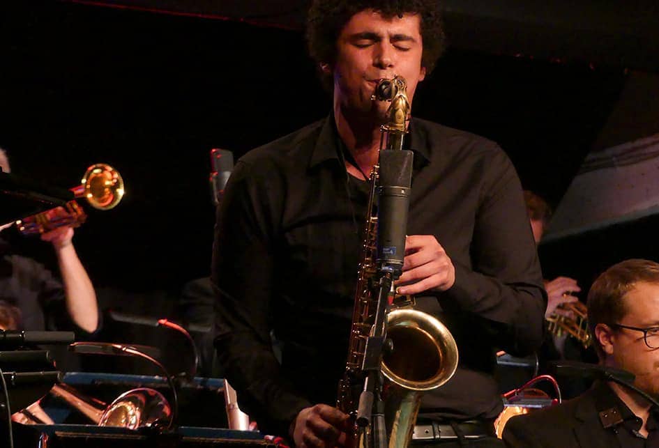 Wie praktisch, dass Altmeister Bob Mintzer seit Jahren mit beiden Musikgiganten unterwegs ist, die Klanglandschaften der regen Yellowjackets passgenau fürs Großformat arrangiert und von den Kölner Kollegen gemeinsam mit den Gelbjacken (Tasten, Bass und Schlagzeug) punktgenau, druckvoll und geradezu betörend aufspielen lässt. Mintzer selbst dabei sehr dominant am Pult, am Sax und am EWI, diesem flotten elektronischen Blaswandler aus Japan, der sich trefflichst für Fusion und das Verschmelzen unterschiedlichster Stil- und Spielarten eignet.