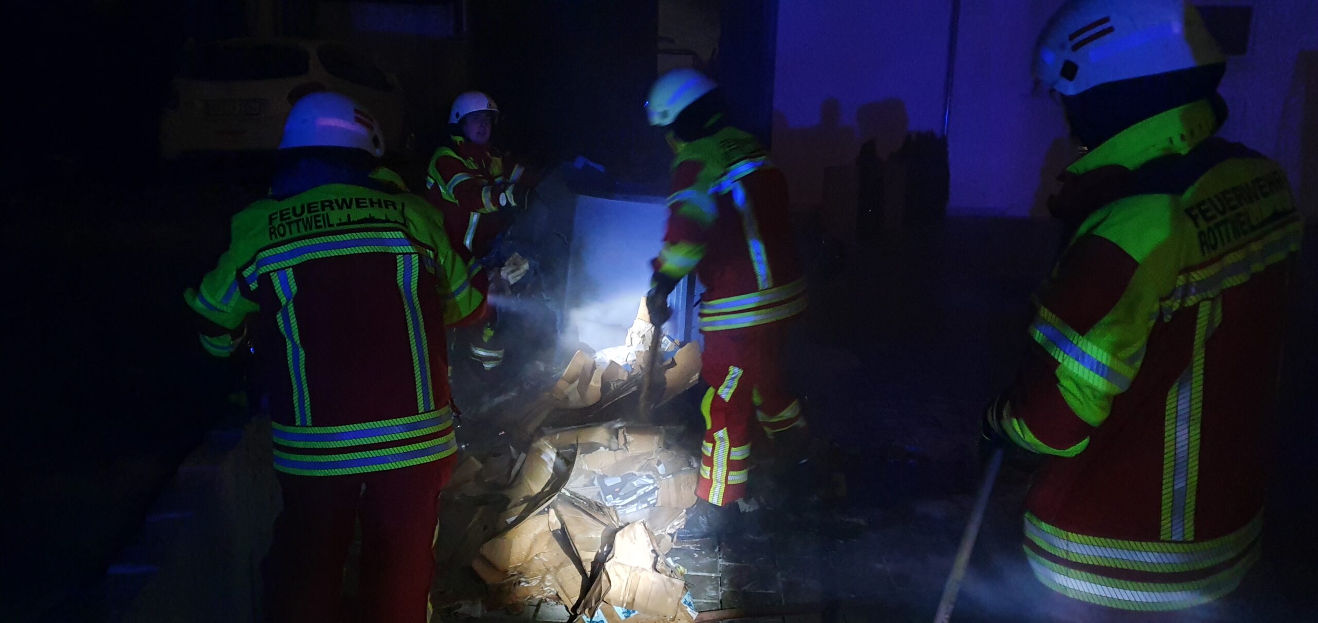Die Rottweiler Feuerwehr rückte mit einem Löschfahrzeug und unter dem Kommando von Stadtbrandmeister Frank Müller an. Sie nahmen den Container regelrecht auseinander Das brennende Papier war schnell gelöscht. Schaden entstand nach ersten Informationen vor Ort nur an dem Container.