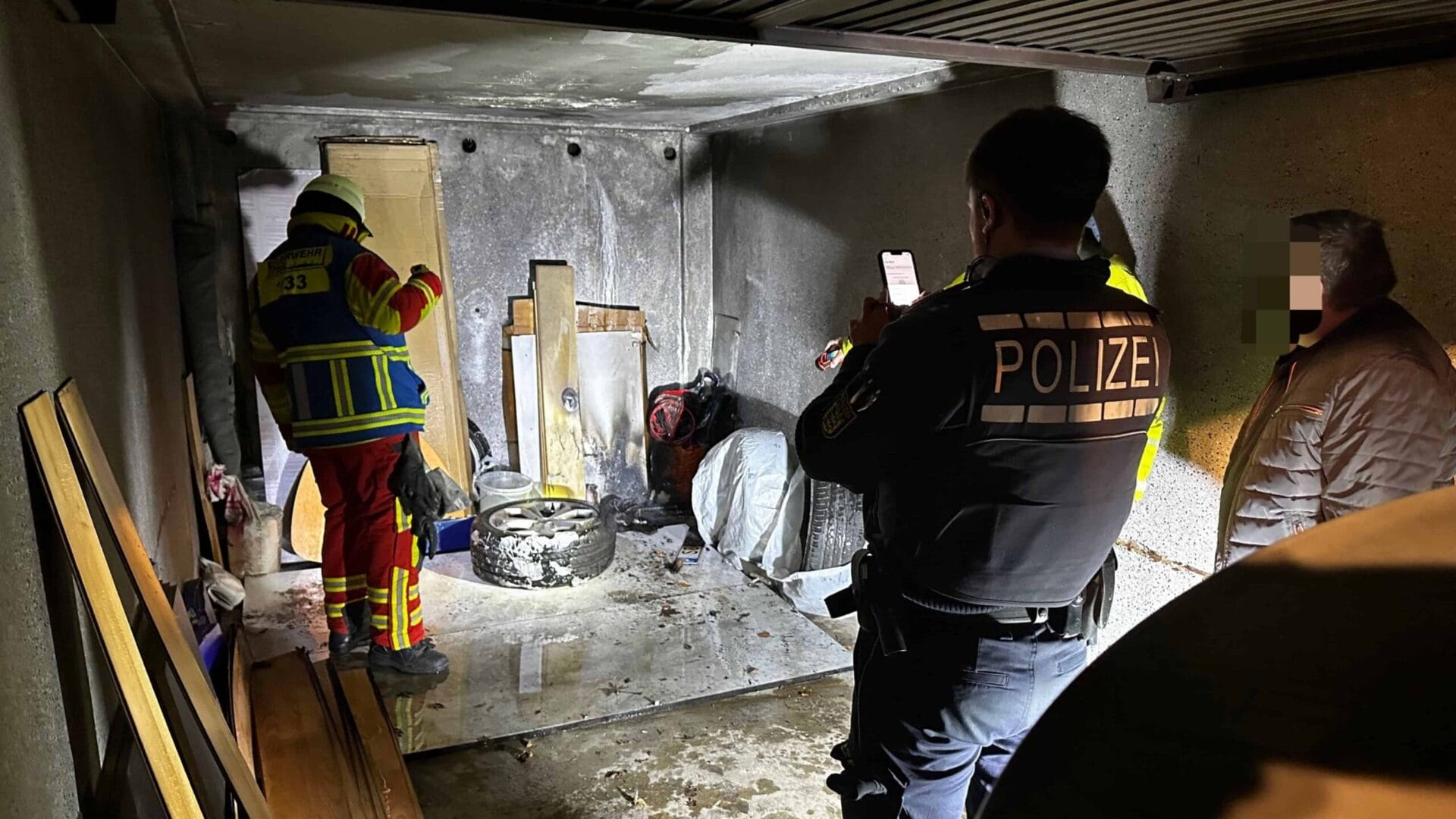 Brand in einer Garage in Rottweil. Die Polizei ermittelt. Fotos: gg