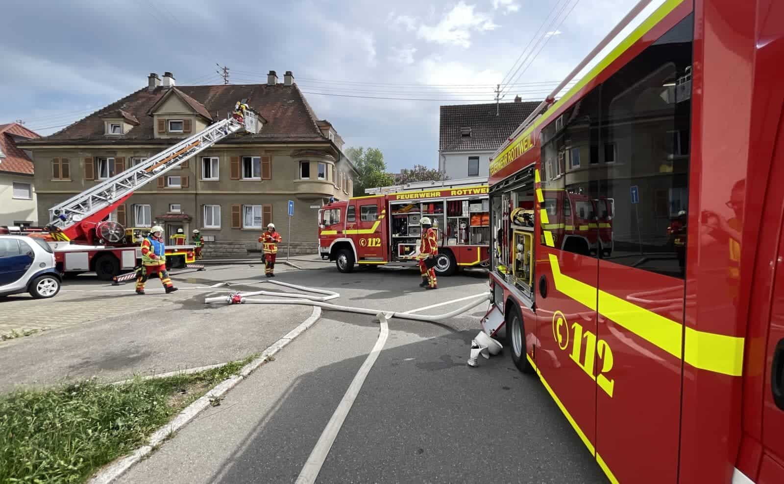 Unser ursprünglicher Bericht: DIe Feuerwehr bekam den Brand rasch in den Griff. Vier Trupps seien unter Atemschutz vorgerückt, so der Rottweiler Feuerwehrsprecher Tobias Frommer. Ein Trupp kam über die Drehleiter. Das Feuer war im ersten Stock des Gebäudes ausgebrochen.