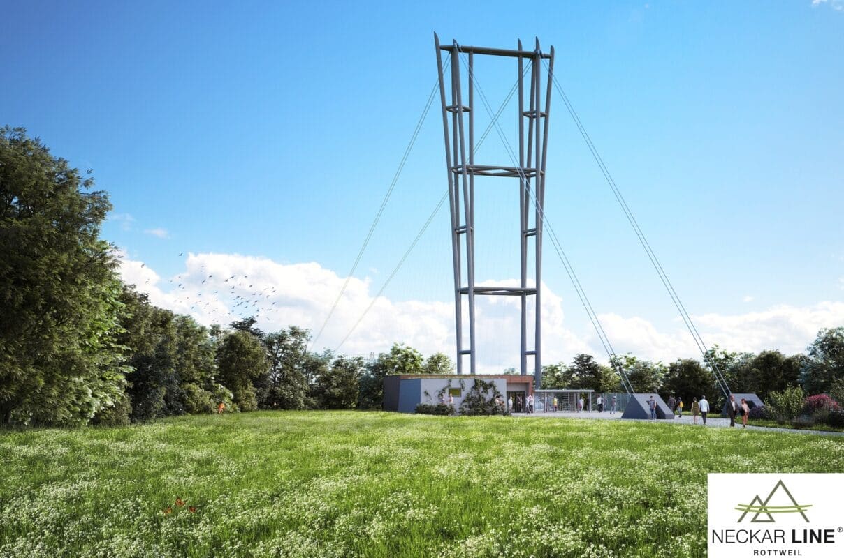 Die Firma Eberhardt hat bereits zwei Hängebrücken im Schwarzwald realisiert, die „Wildline“ in Bad Wildbad und die „Blackforestline“ in Todtnau. Mit 606 Metern soll die „Neckarline“ in Rottweil die längste dieser drei Brücken sein. Sie ist damit mehr als doppelt so lang wie das bisher größte Rottweiler Wahrzeichen hoch: 246 Meter misst der TK Elevator Testturm mit Deutschlands höchster Aussichtsplattform. Ungefähr von dort soll die Hängebrücke künftig Fußgänger zu einem Spaziergang über das Neckartal in die älteste Stadt Baden-Württembergs einladen. Die Hängebrücke kommt mit nur einem Pylon auf der östlichen, innenstadtfernen Neckarseite aus, um das historische Ensemble von Rottweils historischer Innenstadt zu schützen. Auch Stützpfeiler im Neckartal sind, anders als in den ersten Plänen gezeigt, nicht mehr geplant.