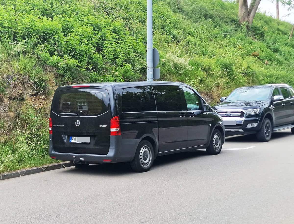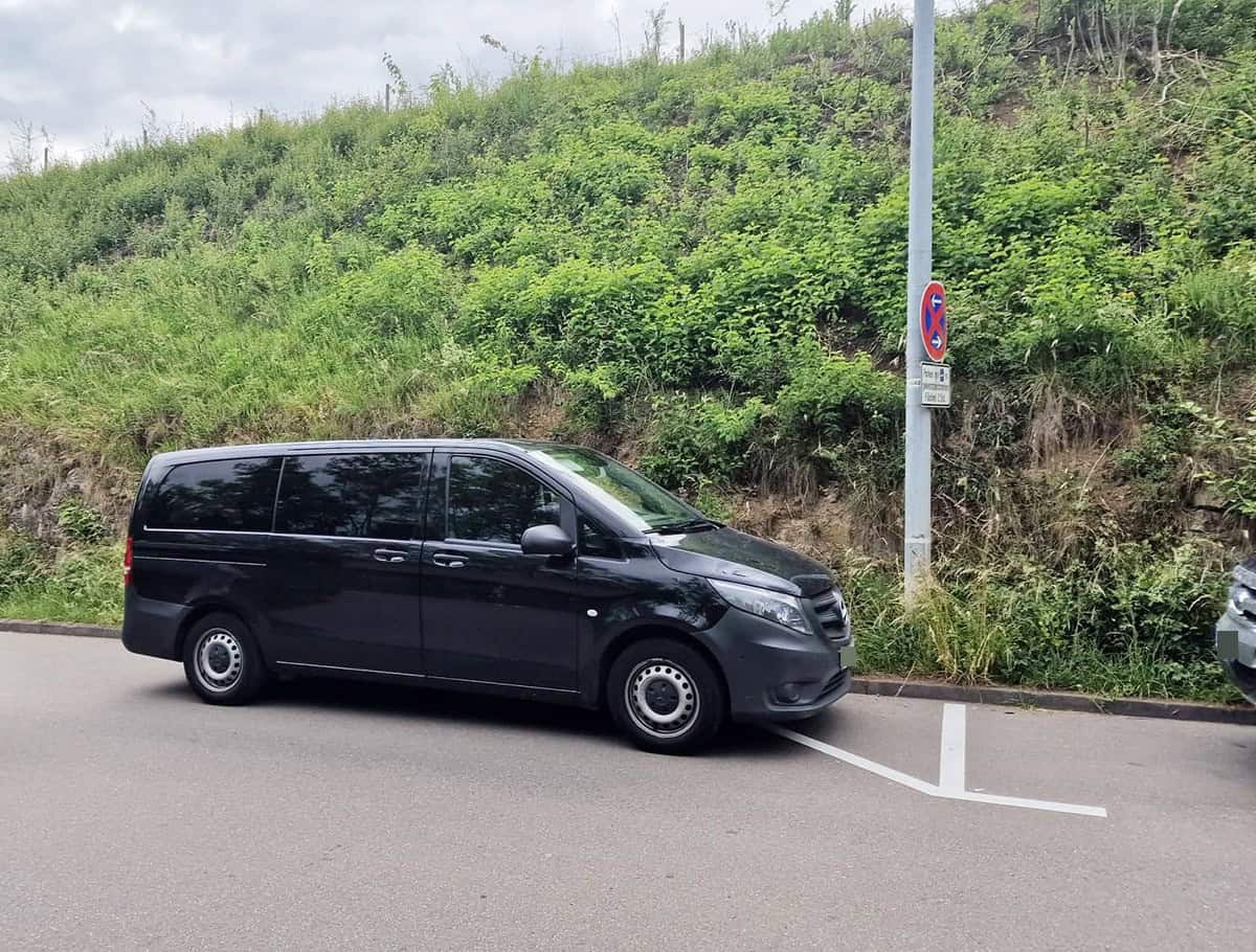 Wir fragen bei der Stadtverwaltung nach, liefern die Bilder des Lesers. Die zeigen den Mercedes Vito mit Karlsruher Kennzeichen, ausgerüstet mit einer Geschwindigkeitsmessanlage. Und geparkt im absoluten Halteverbot. Und zwar in der Schwenninger Straße, entlang des Vinzenz-von-Paul-Hospitals, des Rottenmünsters. Auf der Straße dort geht es ohnehin immer eng zu. Ein Schild zeigt das Halteverbot an, ein Zusatzschild erklärt, dass nur innerhalb der markierten Flächen geparkt werden darf.