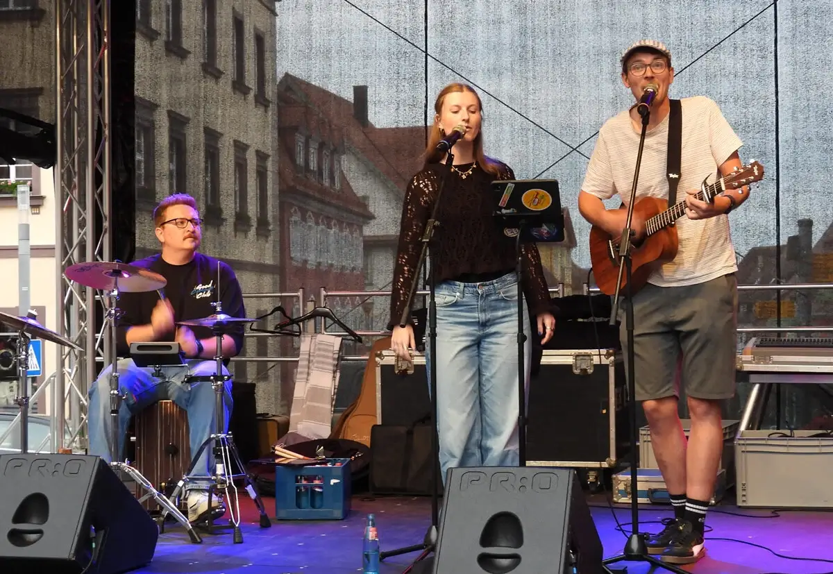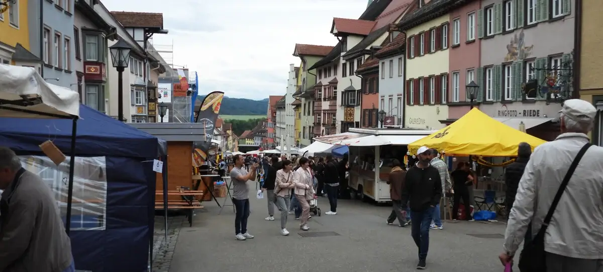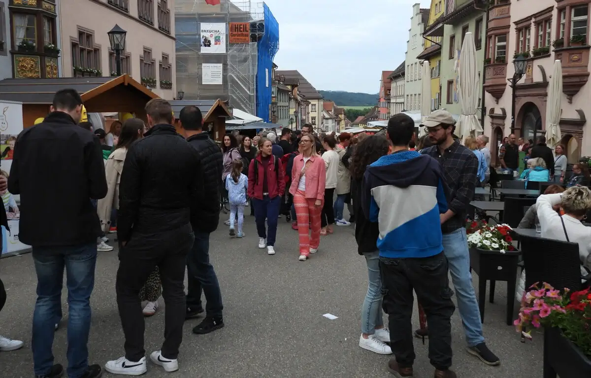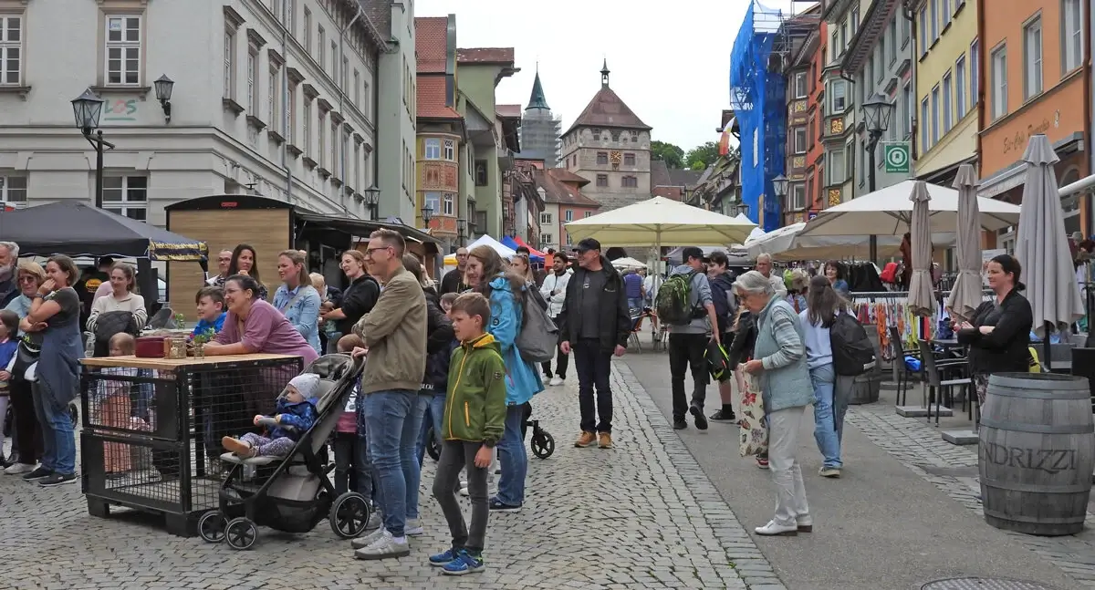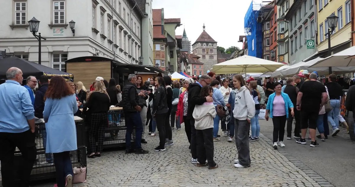 Rottweil – Bereits kurz nach 16 Uhr war die Innenstadt belebt, auch wenn die Warteschlangen vor den Ständen noch überschaubar waren. Neben verschiedenen Waren von Textilien bis Spielzeug standen die Verpflegungsstände im Mittelpunkt. Foodtruck-Profis waren ebenso begehrt wie die Stände von Vereinen und Schulklassen. Im Lauf der Zeit kamen immer mehr Besucher. Besonders eng wurde es bei der Modenschau um Rathaus und Apostelbrunnen. Auch das Programm auf der Bühne lockte die Menschen an – von der Bühnen- und Seifenblasenshow bis zu der Band „Maybeto“. Der baubedingte Umzug des Markts vom Münsterplatz in die obere Hauptstraße war jedenfalls kein Nachteil für die Veranstaltung.