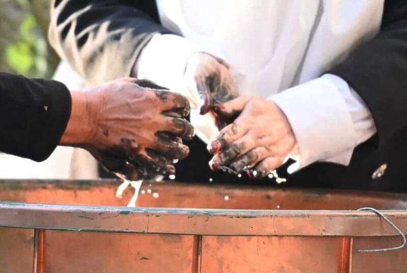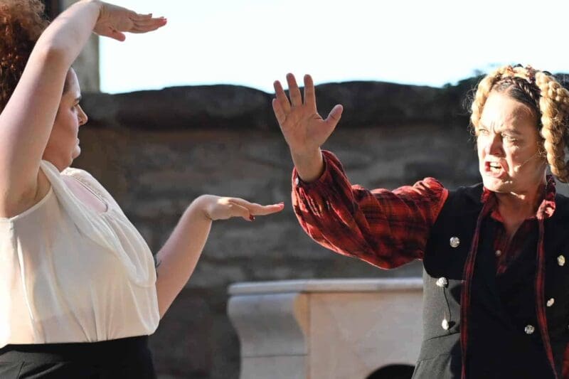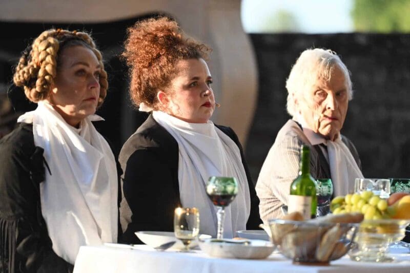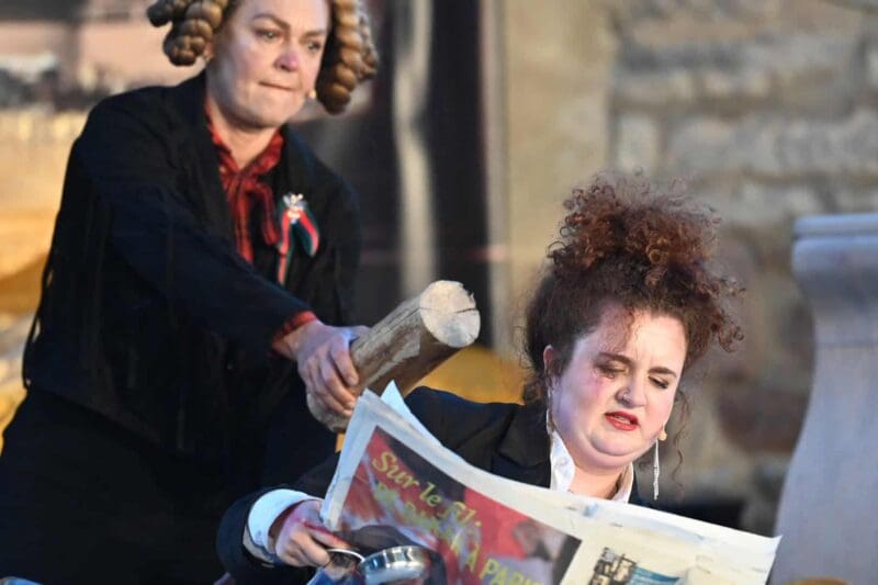 Sie schrubben und werden den Dreck doch nicht los: Man muss unweigerlich an das Wort vom „Hände in Unschuld zu waschen“ denken, wenn Madame Lenglumé (Mailin Klinger) und Madame Mistingue (Petra Weimer) hektisch über dem Wasserfass herumfuchteln, um von ihren Händen den Ruß abzurubbeln, der sie als Mörderinnen ausweisen könnte.
