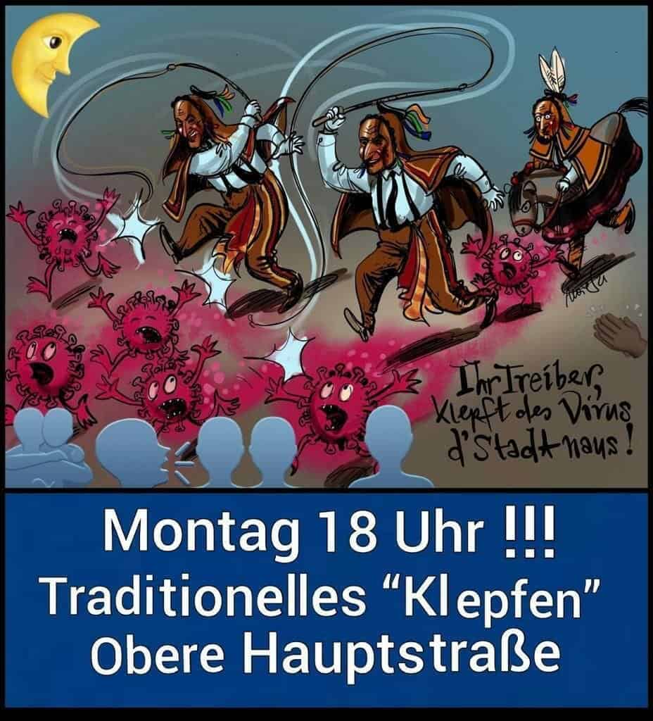 Der Rottweiler, der nun die Idee zur Aktion am morgigen Montagabend hatte, glaubt, dass die Obere Hauptstraße mit einigen wenigen sogenannten Treibern, die die Peitsche knallen lassen, rasch belegt sein könnte. Der Raum erobert und den „Spaziergängern“ die Möglichkeit genommen, sich zu formieren. Ein Zeichen gegen die Proteste gesetzt.