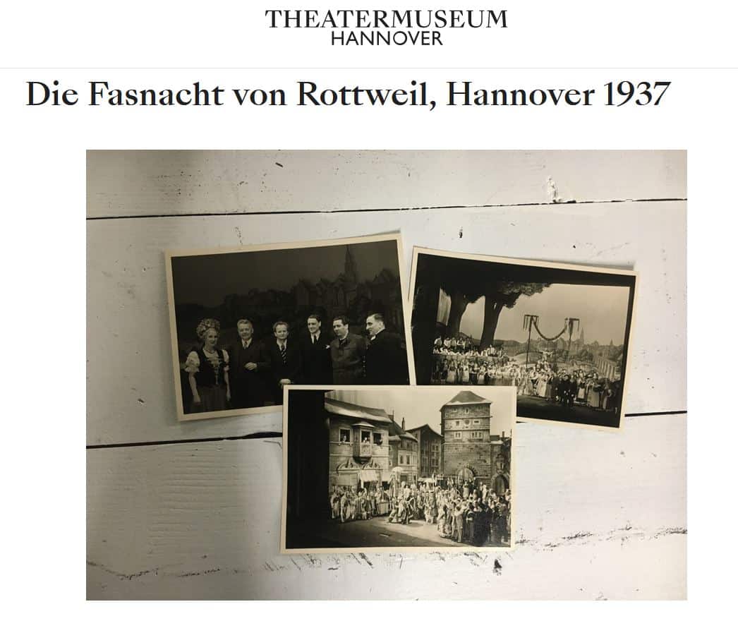 HANNOVER/ROTTWEIL. Am 27. November 1937, vor 85 Jahren, wurde in Hannover mit großem Aufwand die Oper „Die Fasnacht von Rottweil“ von Wilhelm Kempff uraufgeführt. Das Theatermuseum Hannover hat dazu nun bislang unveröffentlichte Dokumente in einem Blogbeitrag zugänglich gemacht.