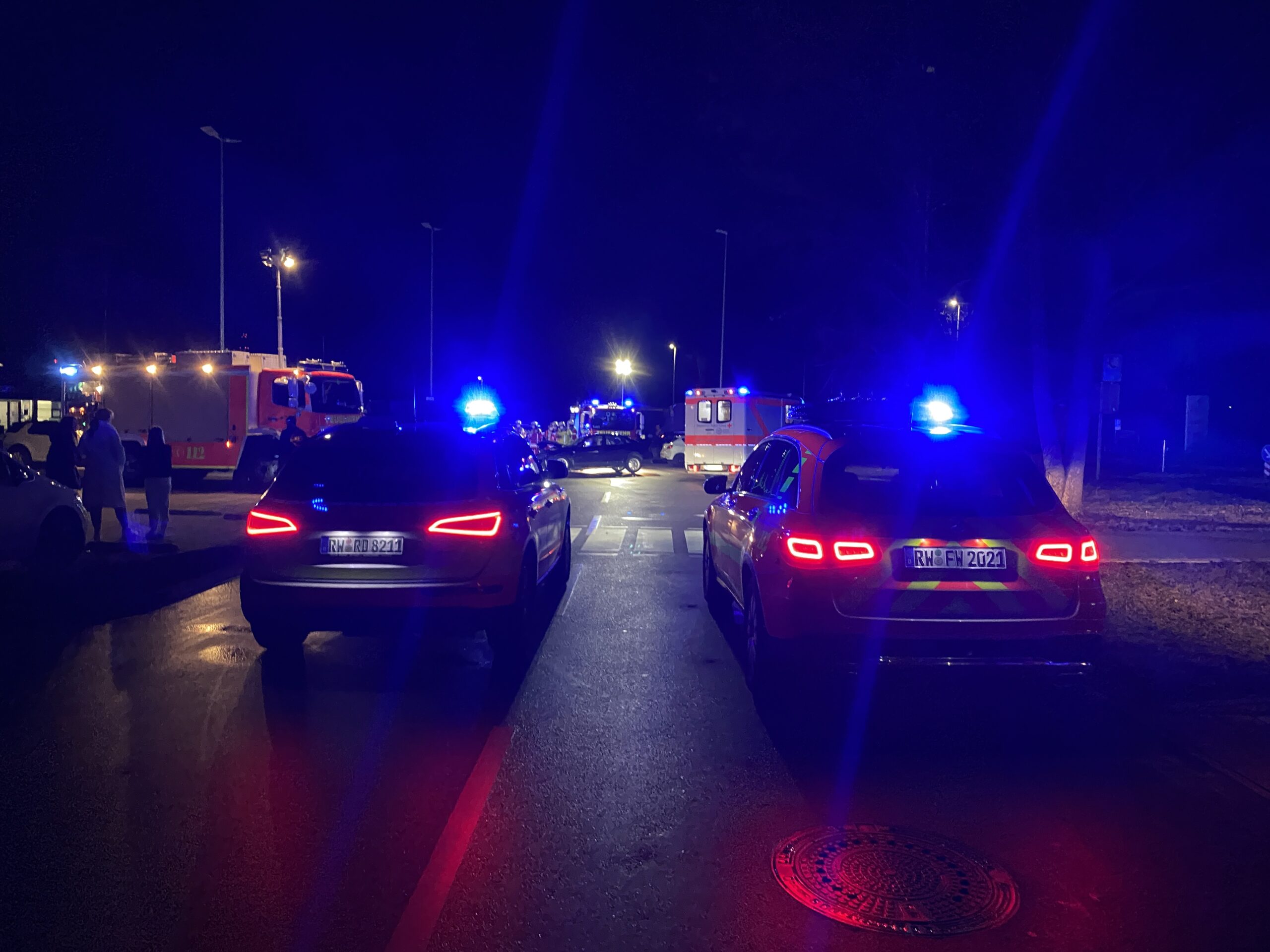 ROTTWEIL. Zu einem schweren Unfall mit mehreren Verletzten kam es in der Nacht auf Samstag auf dem Parkplatz eines Einkaufszentrums in Rottweil. Ursache: nach ersten Informationen sogenannte Driftings, wobei PS-starke Wagen beschleunigt und zum Ausbrechen gebracht werden. Eine Augenzeugin bestreitet das, die Polizei verweist auf laufende Ermittlungen. Neben ihr waren DRK und Feuerwehr im Einsatz.