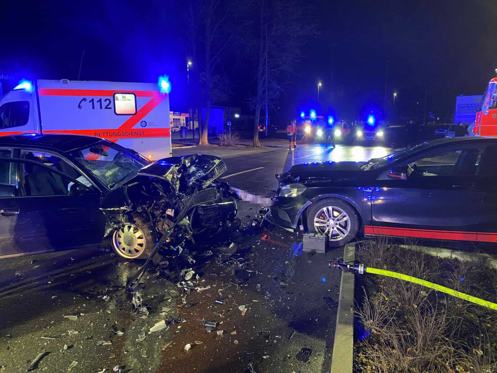 Fest steht: Es kam zu einem massiven Frontalzusammenprall beider Fahrzeuge. Die Autos wurden völlig demoliert, die Insassen zum Teil schwer verletzt. Es handelte sich offenbar jeweils um einen Fahrer und Beifahrer. Sie sind mit dem Rettungsdienst in ein Krankenhaus gebracht worden.